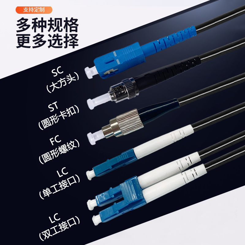 Armored single mode dual core LC-LC Armored single mode dual core LC-FC Armored single mode dual core LC-SC Armored single mode dual core LC-ST Armored single mode dual core FC-FC Armored single mode dual core