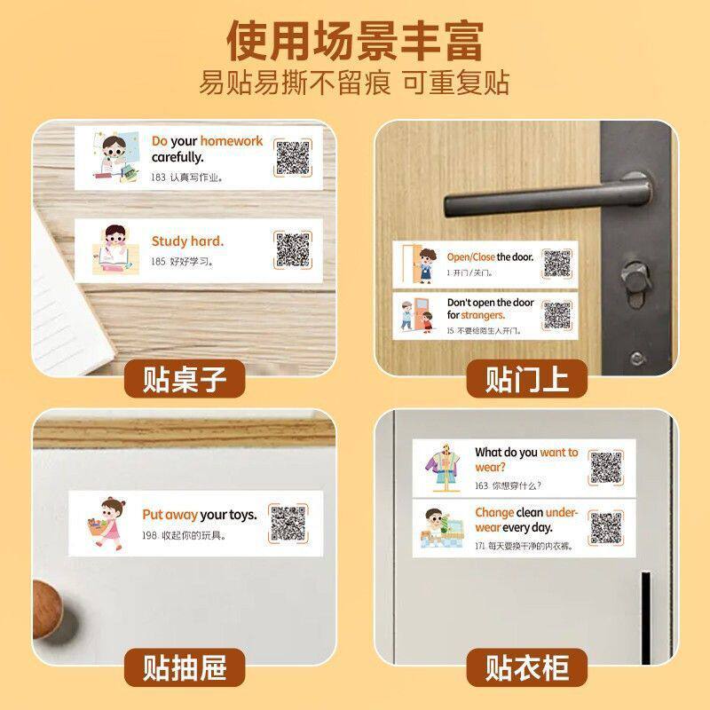 English Spoken Stickers Daily Life Scene Elementary School Students Enlightenment English Words Convenience Stick Label Sticker Waterproof-Taobao