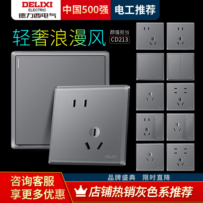 Deri West Concealed 2-open multi-control switch socket II open single two open double control starry air grey power light switch 86 type-Taobao