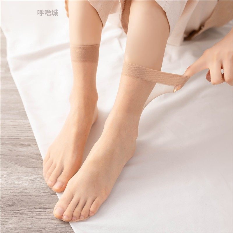 10 double spring summer women socks ultra-thin 5D crystal silk socks anti-hook and sweat anti-slip through meat ice wire foot tip transparent short silk stocking-Taobao