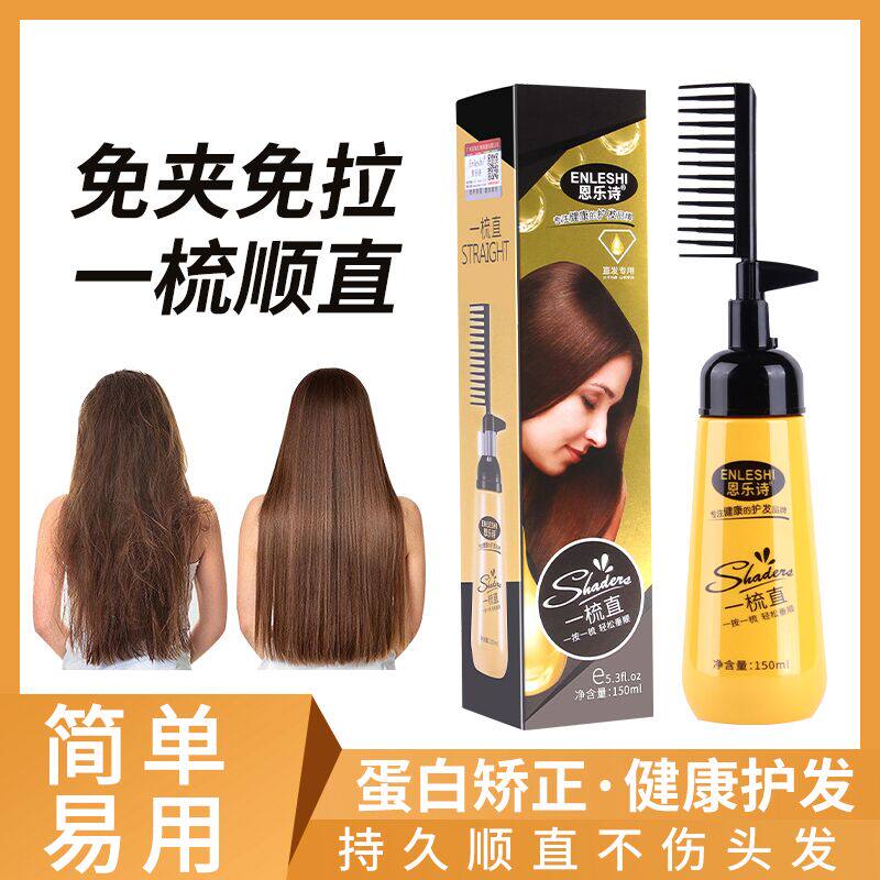 Enleshi combs straight without hurting hair wash straightening softener free of pulling hair smooth protein correction straight hair cream smooth
