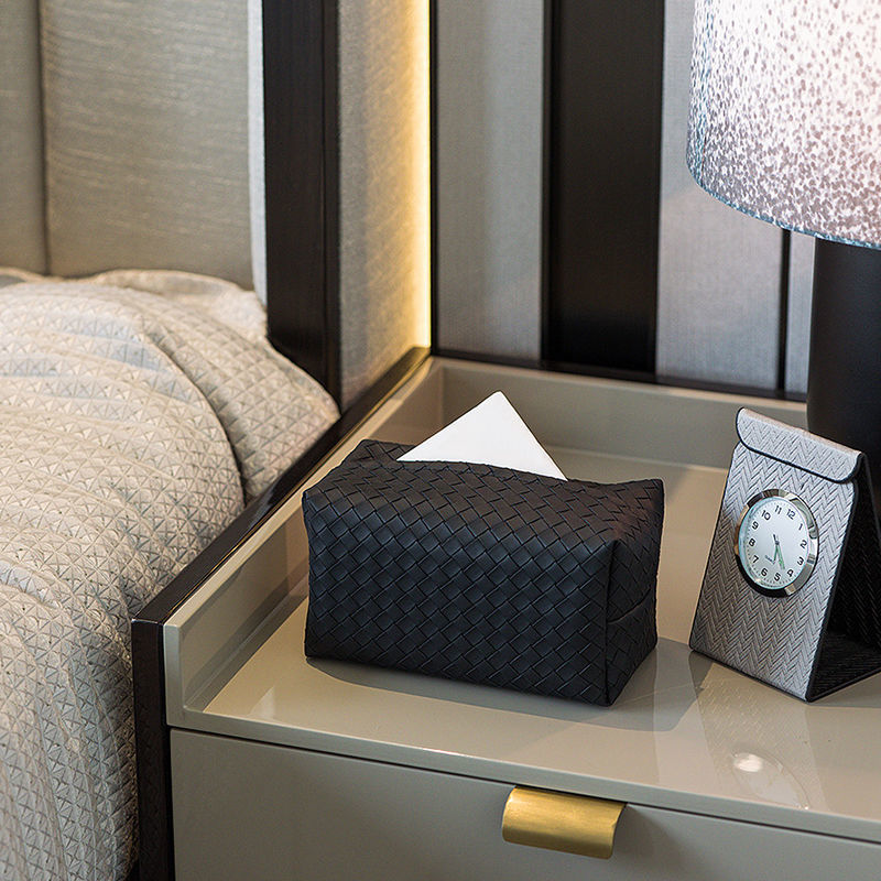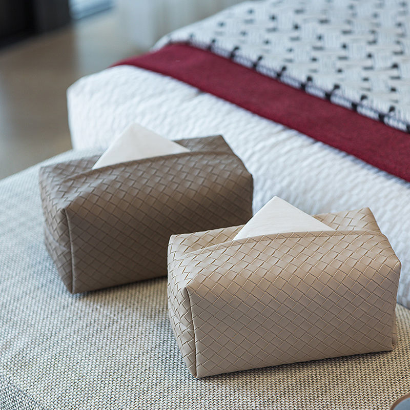 Minimalist light extravagant High sense woven textured leather on-board paper towel box Living room Tea Table Cramps Paper Towels Paper Containing Box-Taobao
