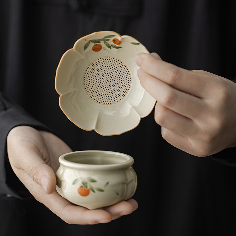 Persimmon Ruyi Tea Filter Group Persimmon Tea Filter (Single Funnel) Persimmon Persimmon Tea Filter Group Glass Plum Blossom Cup Persimmon Tea Filter Group Glass Petal Public Cup Persimmon Persimmon Ruyi Tea Filter group Grass