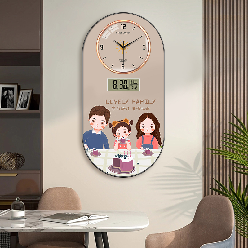 Cream Wind family Clock hanging bell Living room Restaurant electronic Clock Wanyear calendar Aisle Clock Glass Hood Wall-mounted Painting-Taobao