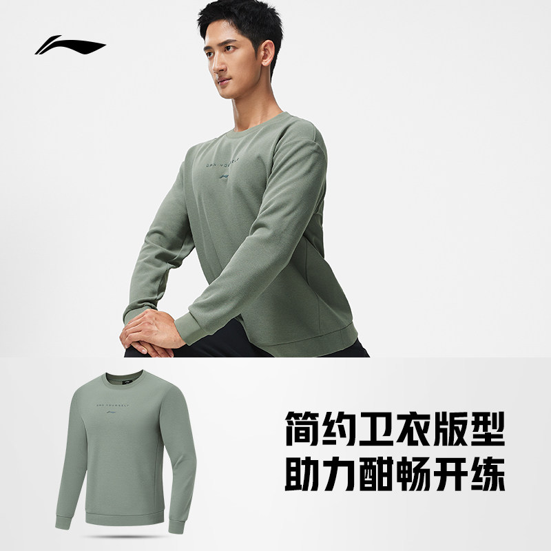 Li Ning added with a velvety coat of clothing) WARM AT Warm Men's New Fitness Hooded Sweatshirt Long Sleeve Round Collar Winter Sportswear-Taobao