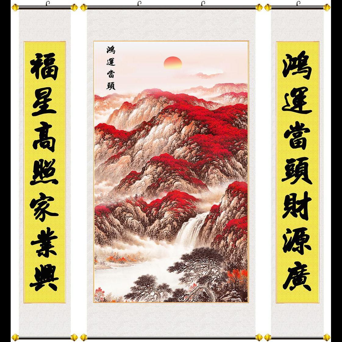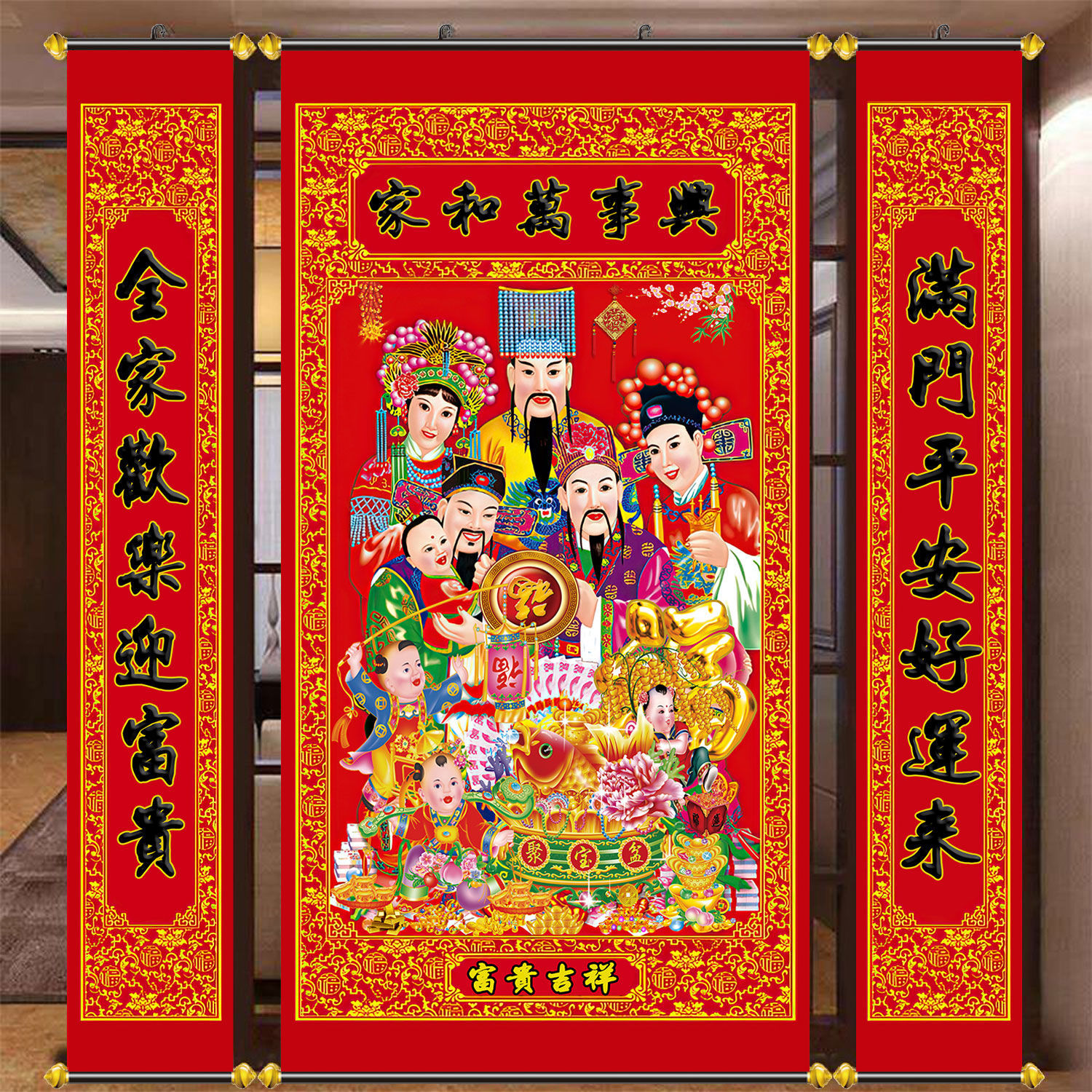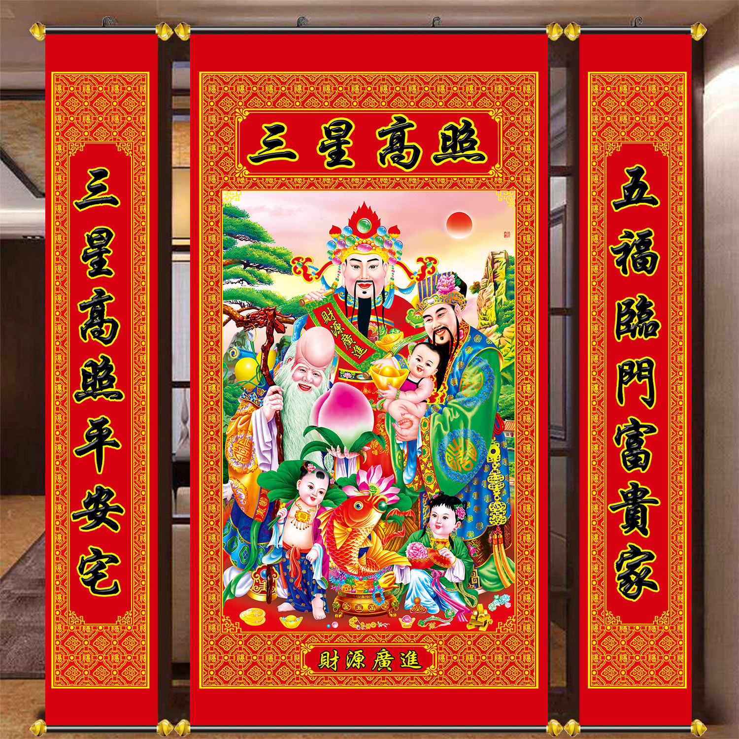 Gao Fuxing photo of couplets in rural parish hall painting Living room atmosphere Samsung Gao Zhaojin Tong Yufemale triptych-Taobao