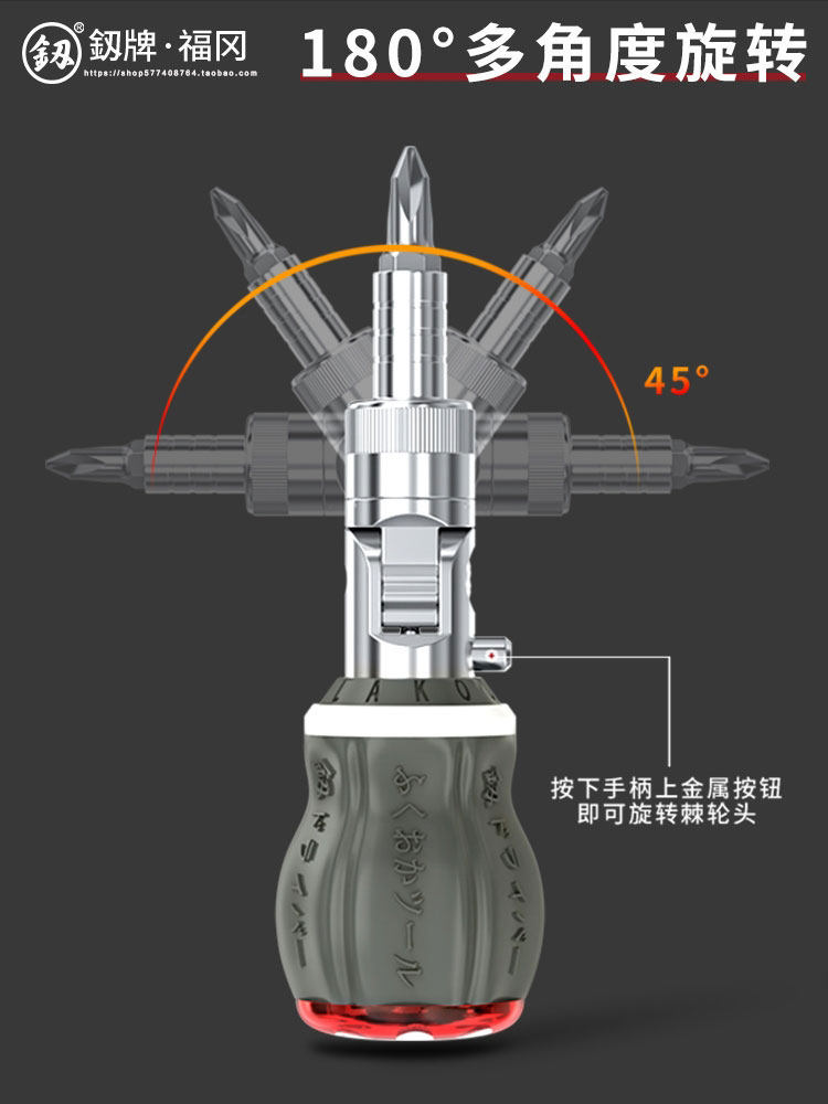 Japan Fukuoka ratchet screwdriver multi-angle multi-batch head high-strength cross-lined hexagon strong magnetic screw batch-Taobao
