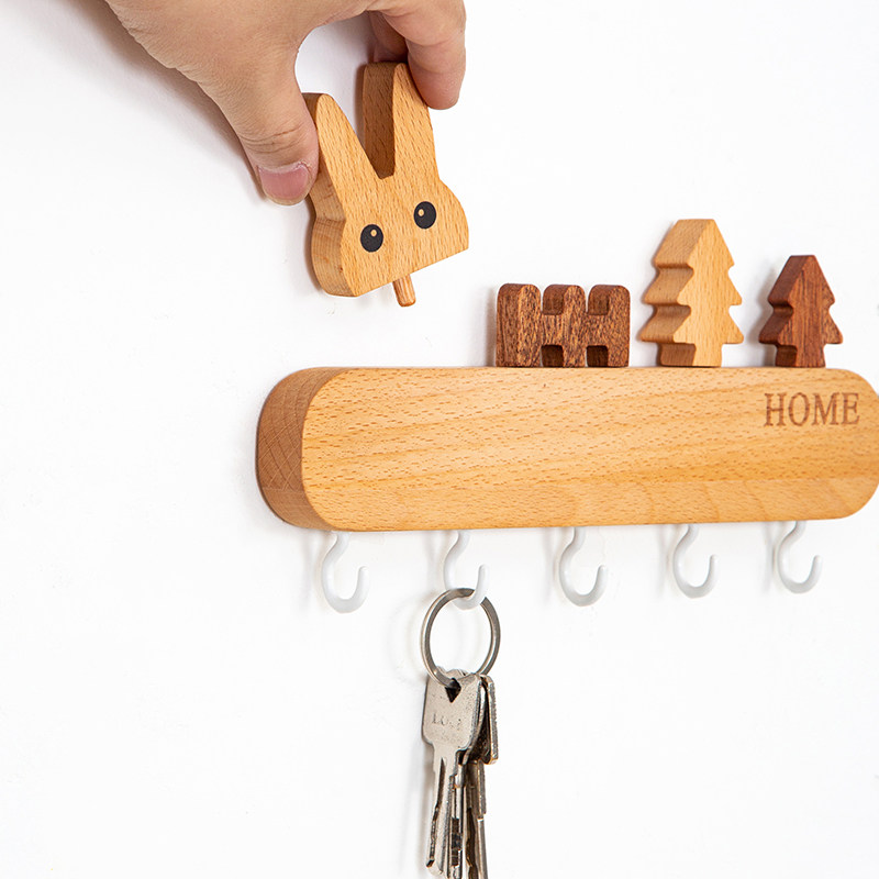 Entrance door Creative Decorative Key Solid Wood Hook Nordic Wall Genguan Wall-mounted shelf Free to punch-Taobao