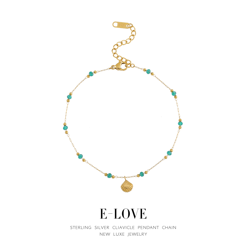 Retro Green Stone Plated 18K Gold Shells Foot Chain Women Light Extravagant Senior Sense Small Crowddesign 2023 New Exploits Foot Chain-Taobao