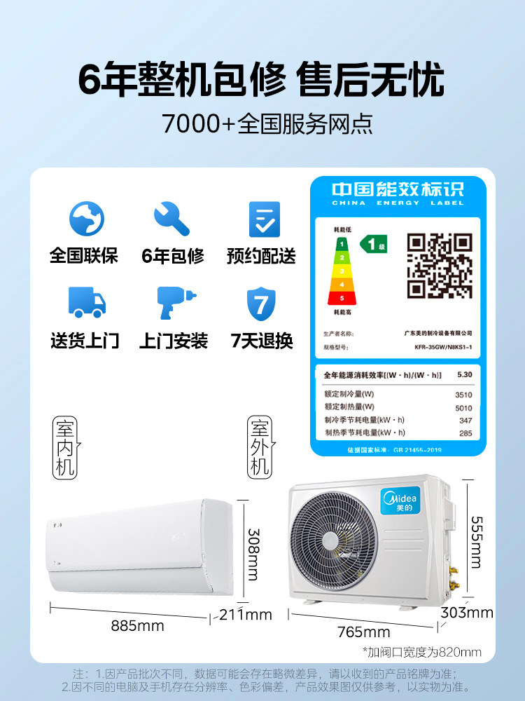 Midea on-hook cool power saving 1 5 hp new level energy efficiency energy-saving inverter air conditioner heating and cooling 35KS1-1