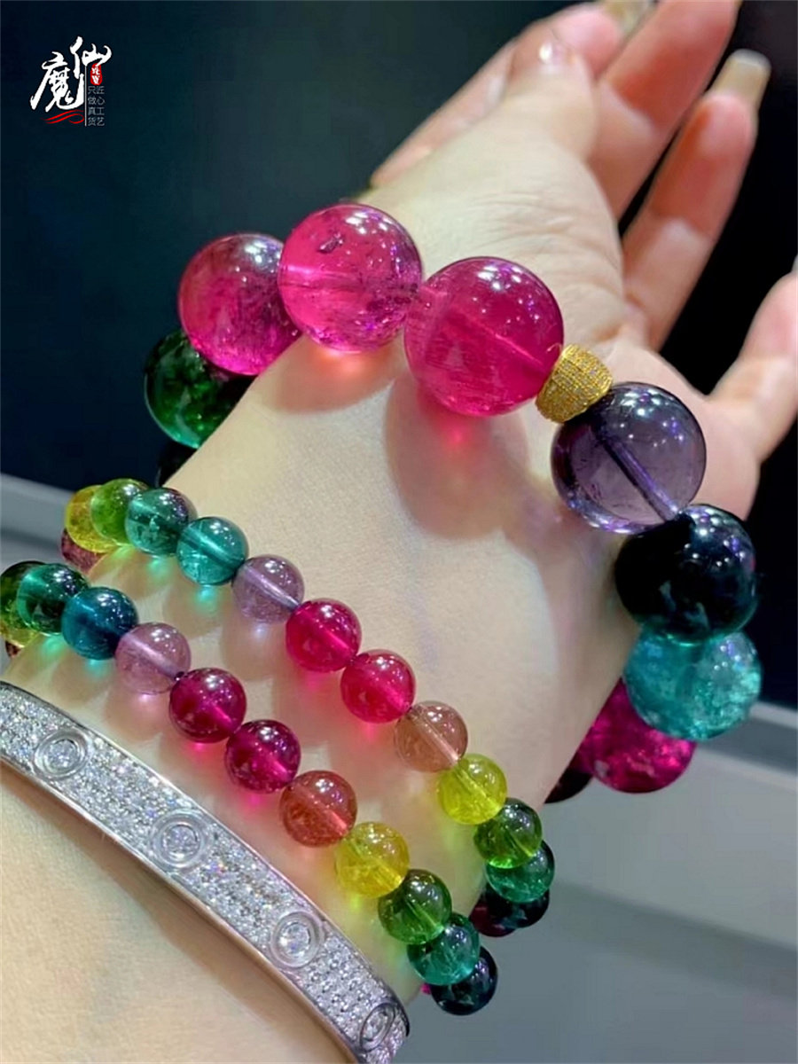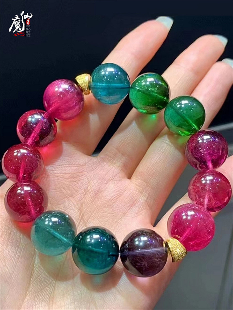 Natural Brazil Bite bracelet women's old mine Rainbow Beatrix bracelet with strong and colorful logo single ring large grain original design-Taobao