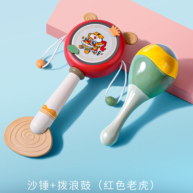 (⭐Treasure preferred freshmen training suit⭐) (Audiovisual Three Sets) Sand Hammer Rattle Rattle Drum-National Tide Red (Audiovisual Three Sets) Sand Hammer Rattle Rattle Drum-Viya Orange (Auditory