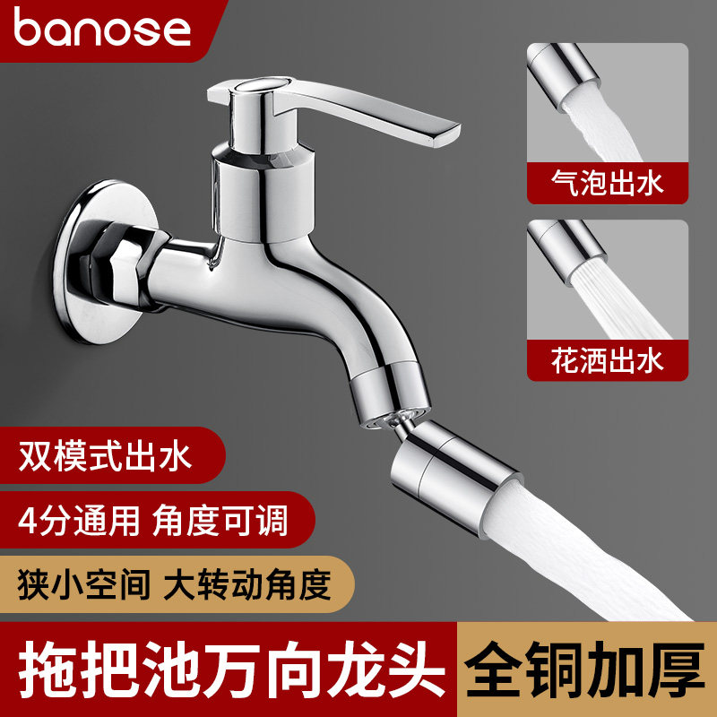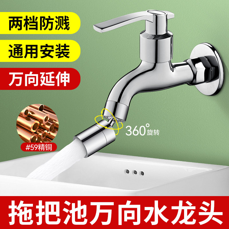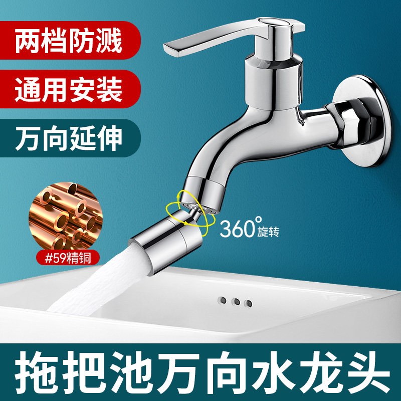Full copper mop pool universal tap special balcony laundry pool single cold lengthened into wall style fast open home extension-Taobao