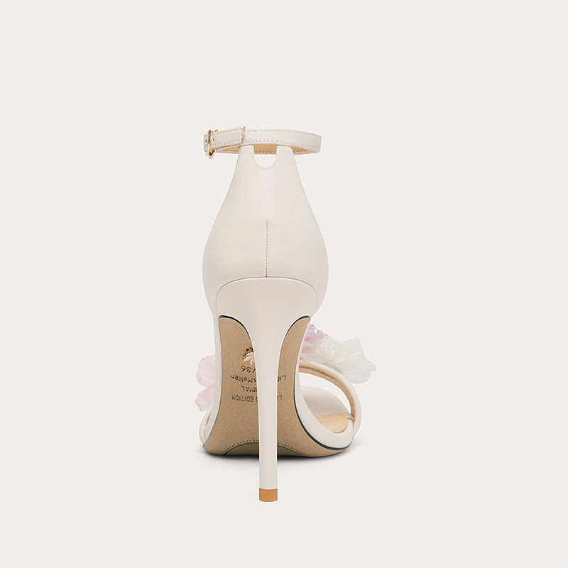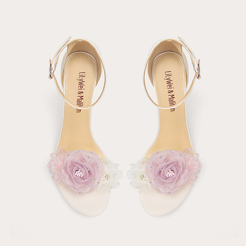 Lily Wei French style small sandal flower high heel shoes with large size women's shoes 41-43 small subwedding shoes summer-Taobao