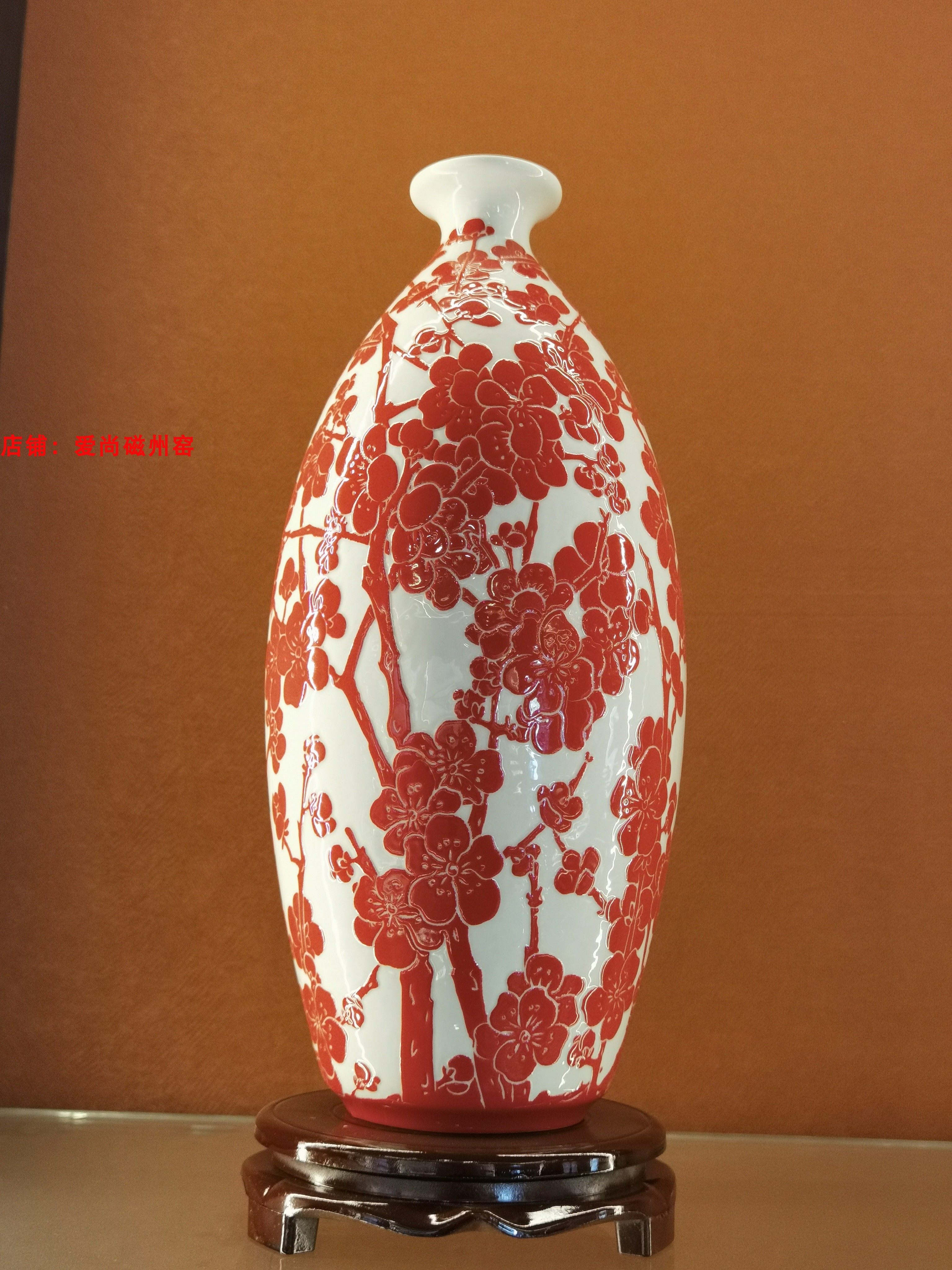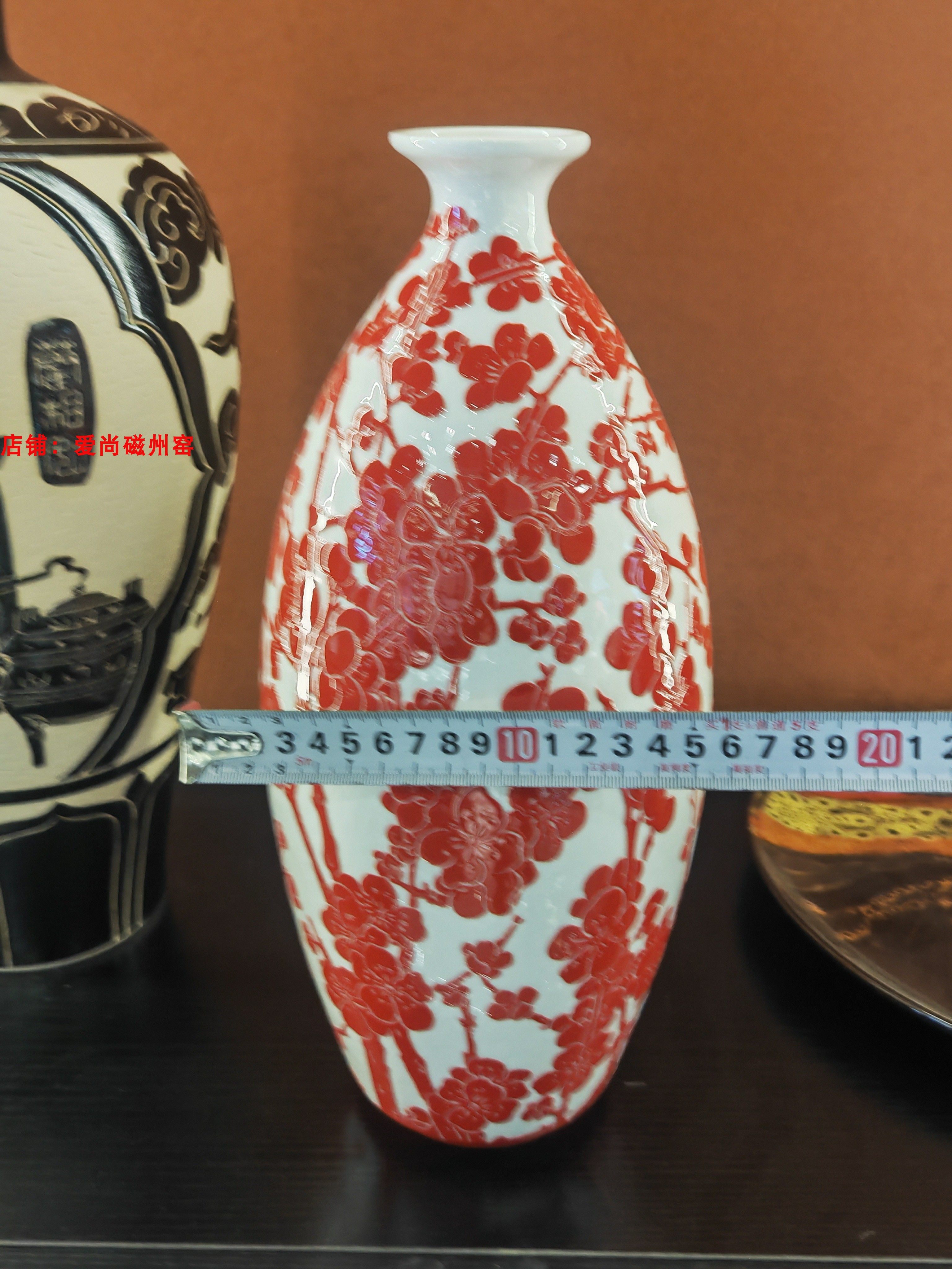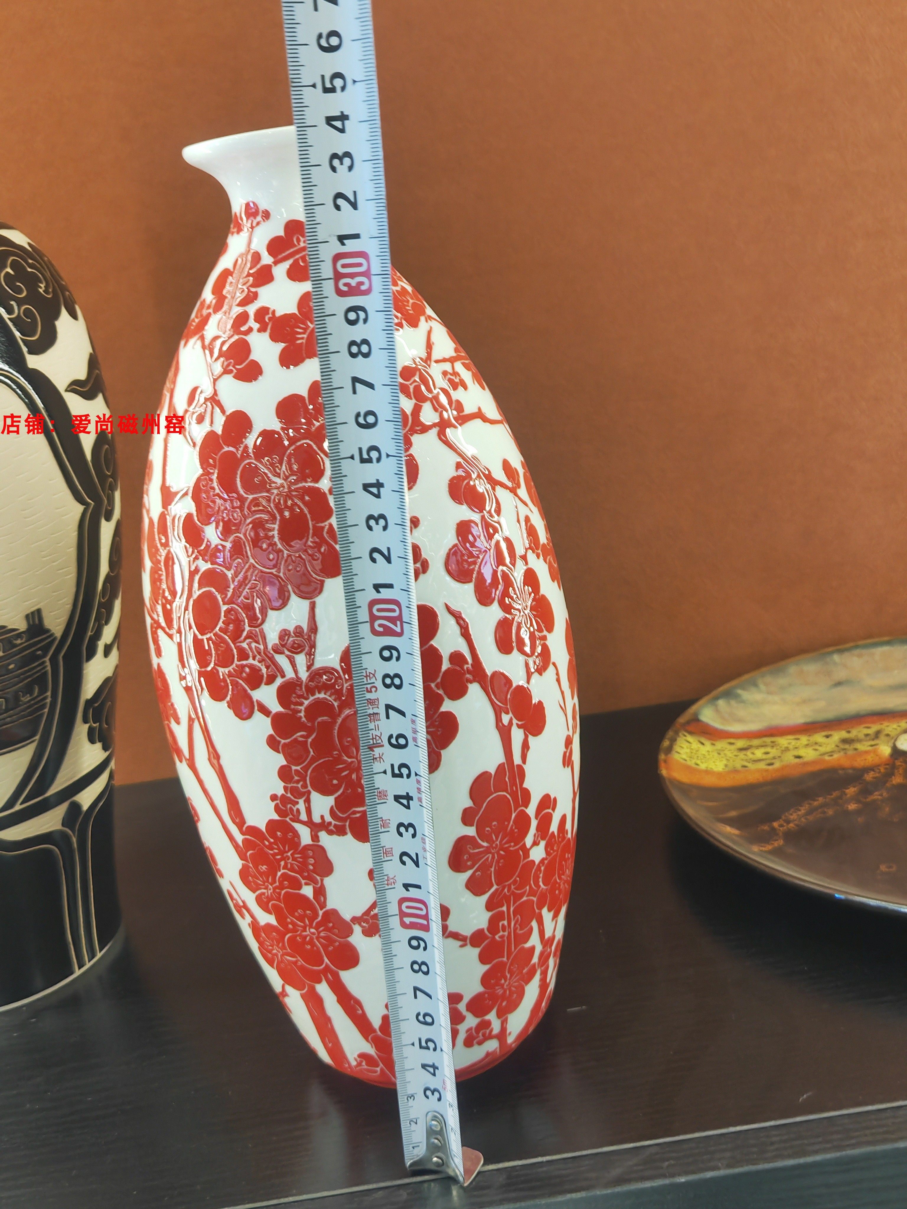 Handan Gifts Magnetic State Kilns Porcelain Pure Handmade Red Color Flowers Plum Blossom Plum Bottle Peak Pencity Ceramic Gift Box Packaging-Taobao
