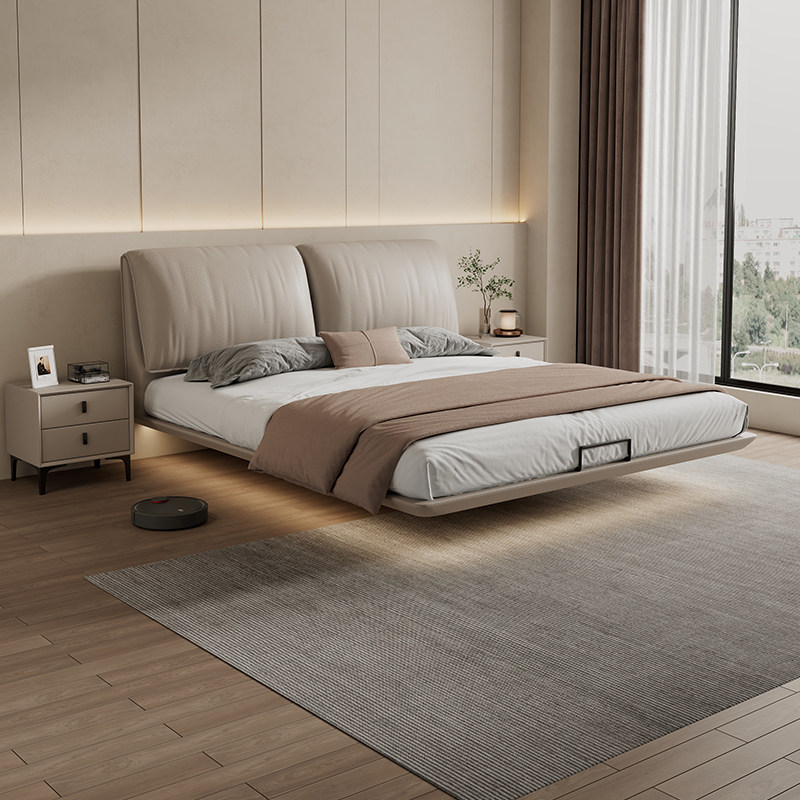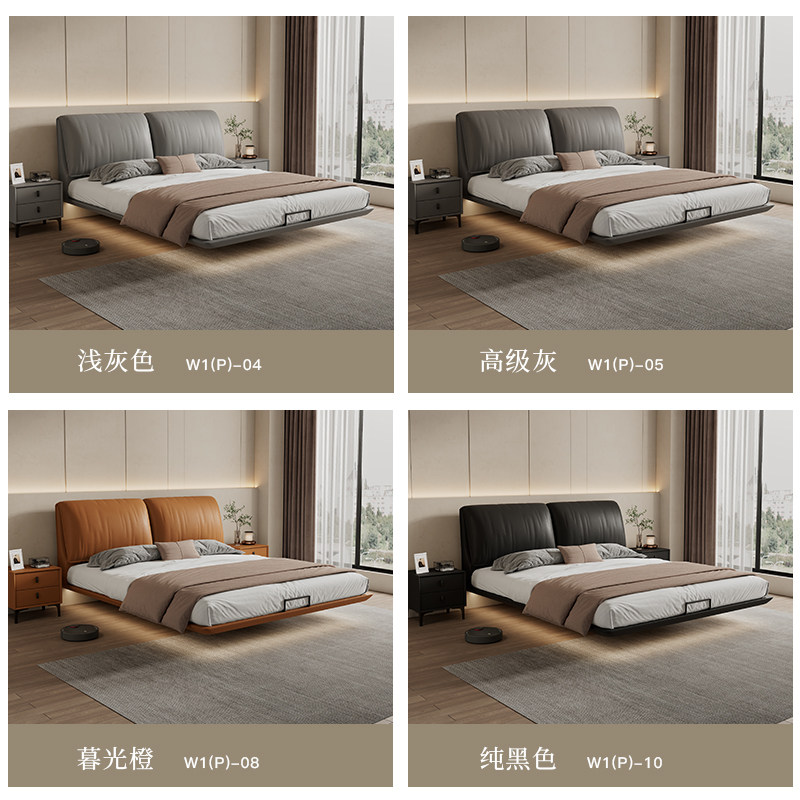 Muted dermis suspended bed (upgrade 15CM steel wood platoon skeleton -- muted like a sound) with LED intelligent induction lamp muted genuine leather suspended bed (upgrade 15CM steel wood platoon skeleton -- muted no differently