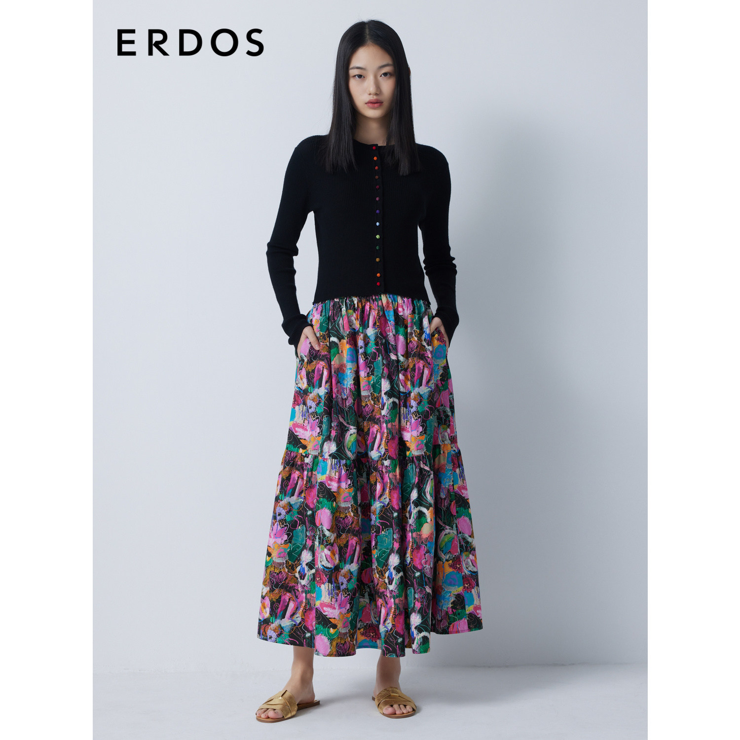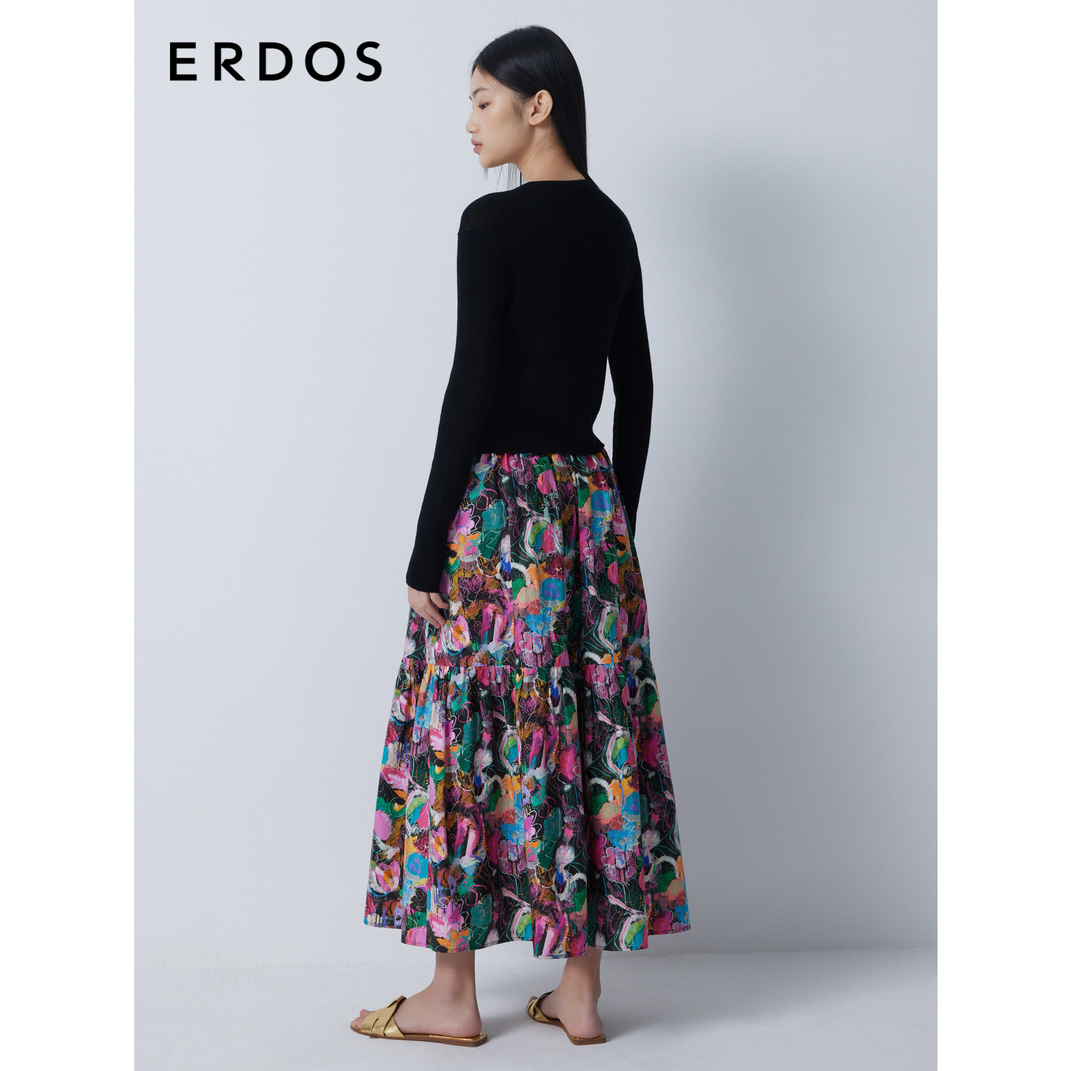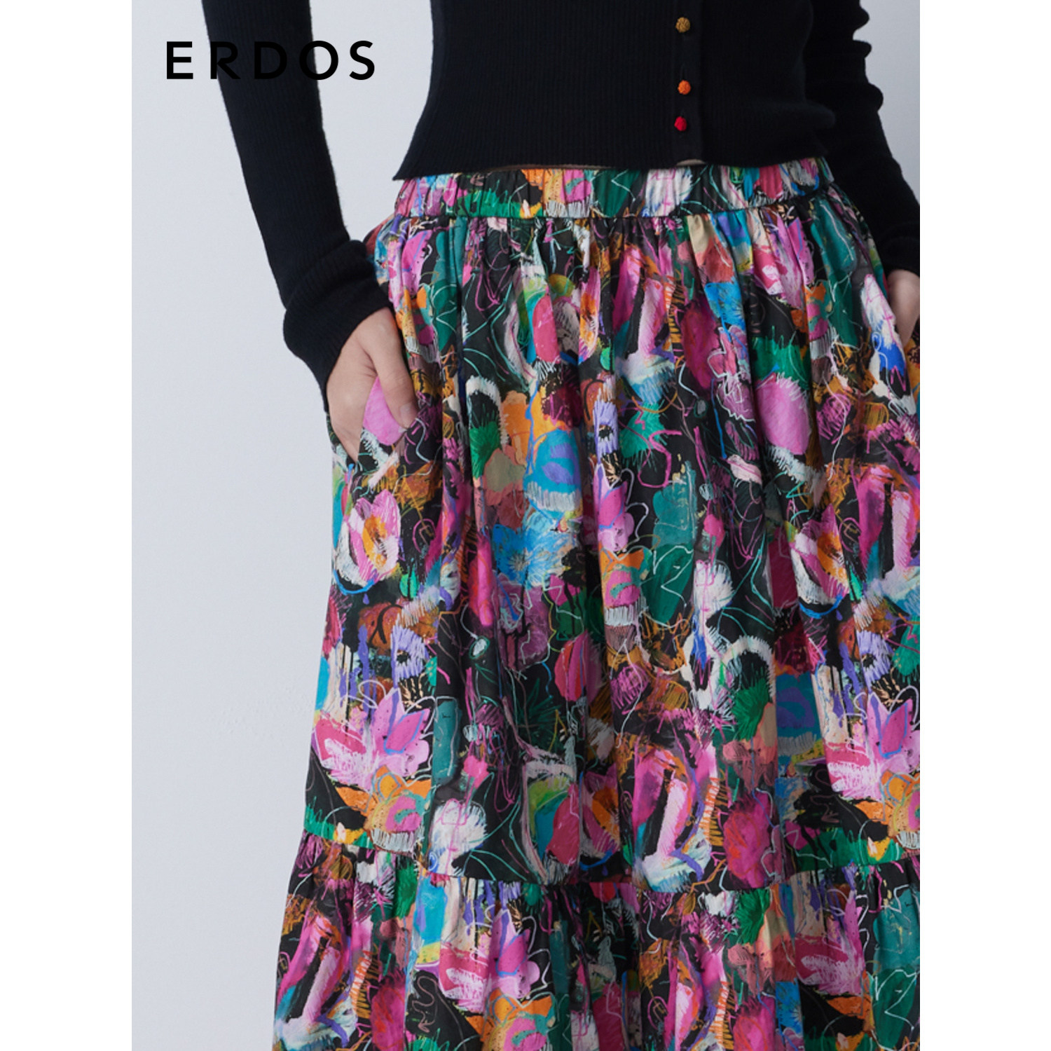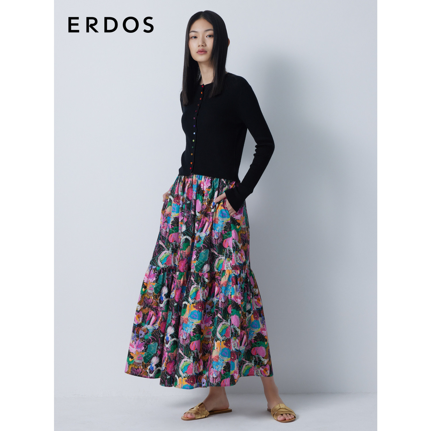 ERDOS 23 autumn new products pure cotton Liberty chopped flowers in long style Fashion 100 Comfortable Cake Half Body Dress-Taobao