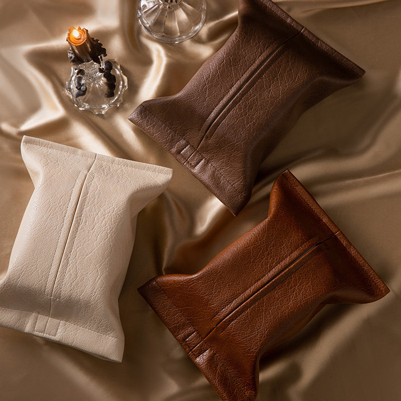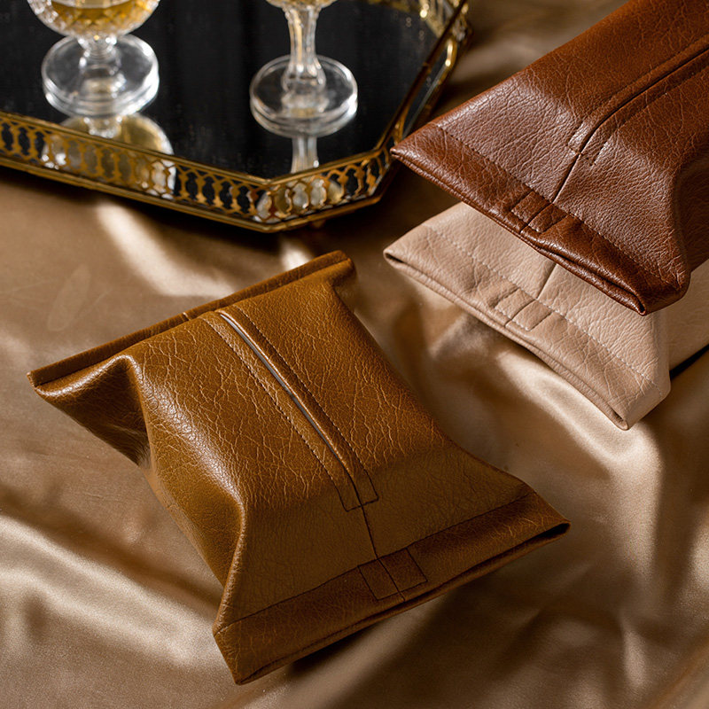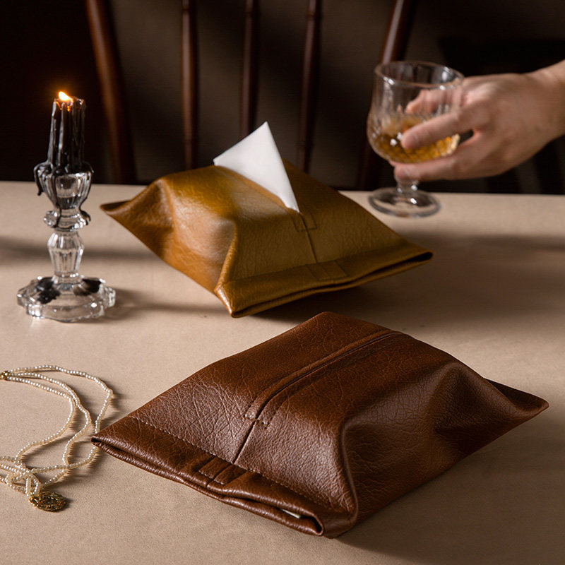 Fan Ju attitude simple and elegant retro tissue bag high-grade leather tissue box living room coffee table paper napkin storage box