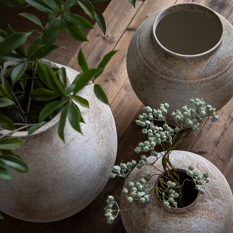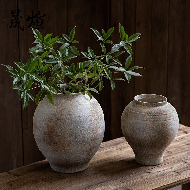 Retro ceramic vase Japanese style white Silence Wind Pottery Jar Living-room Decoration Hydropony inserts Coarse Pottery Flower Pendulum-Taobao