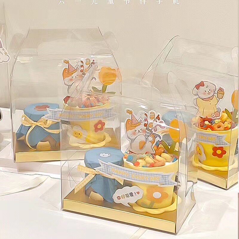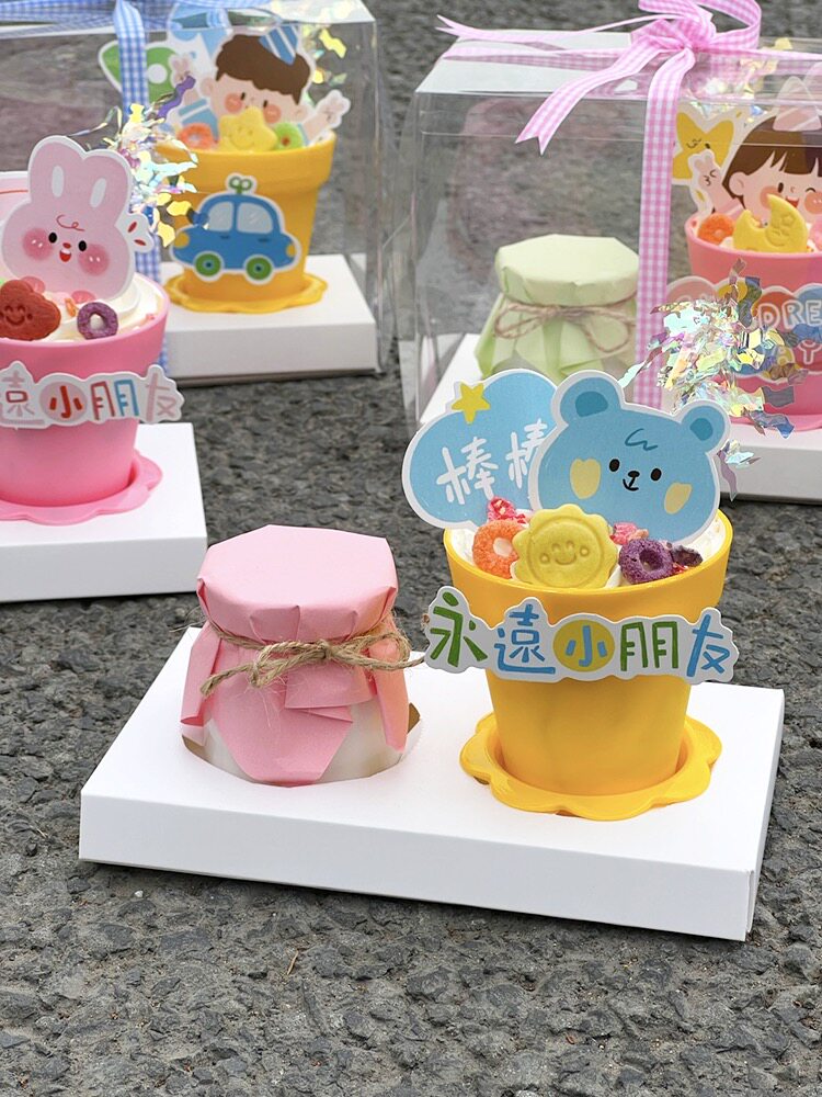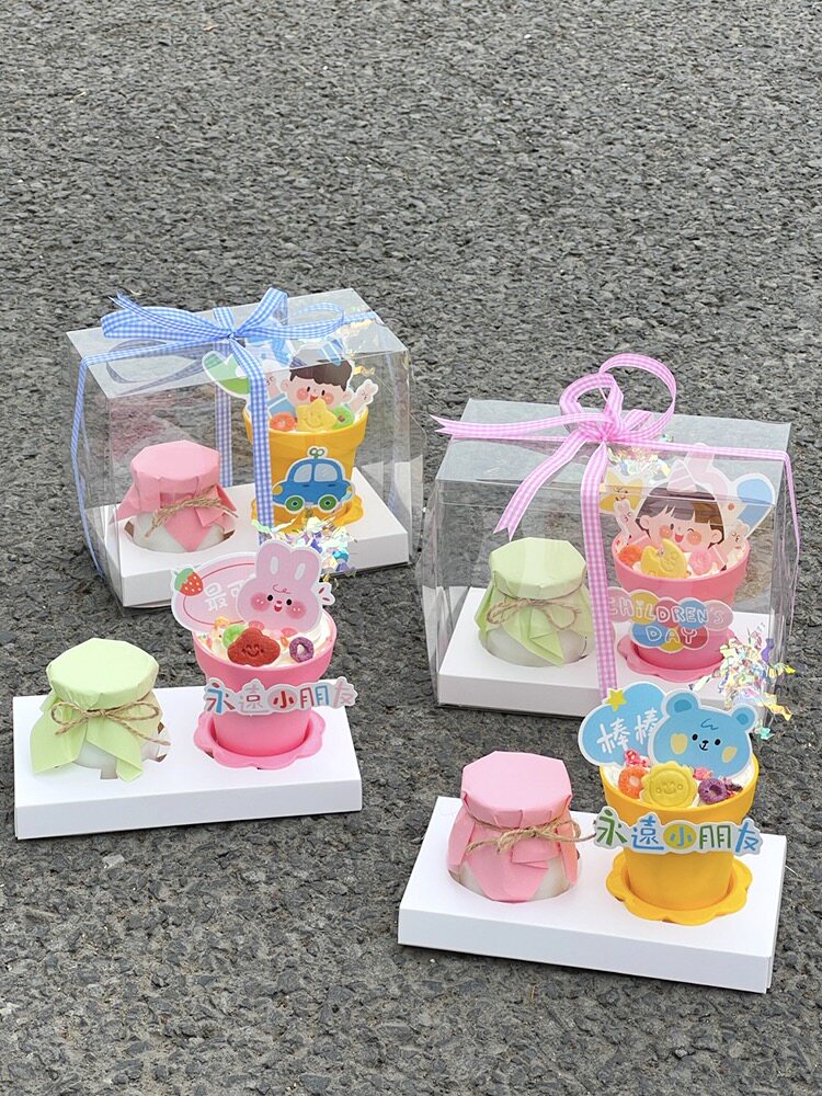 Children's Day Potted Plant Carrying Box Cake Decoration Pudding Bottle 2 Pieces Packing Box 61 Happy Plug-in