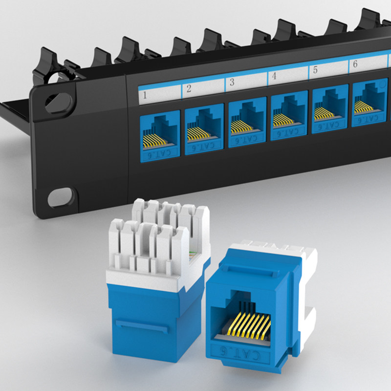 Snap-in 24-port Category 5e patch panel White snap-in 24-port Category 5e patch panel Blue snap-in 24-port Category 6 patch panel White snap-in 24-port Category 6 patch panel Blue 24