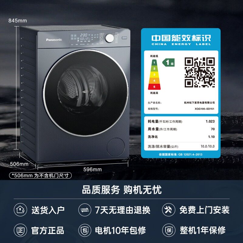 (506 Zhen thin) Panasonic 10 washing 7 baker fully automatic home frequency conversion roller washout integrated washing machine SD151 -Taobao