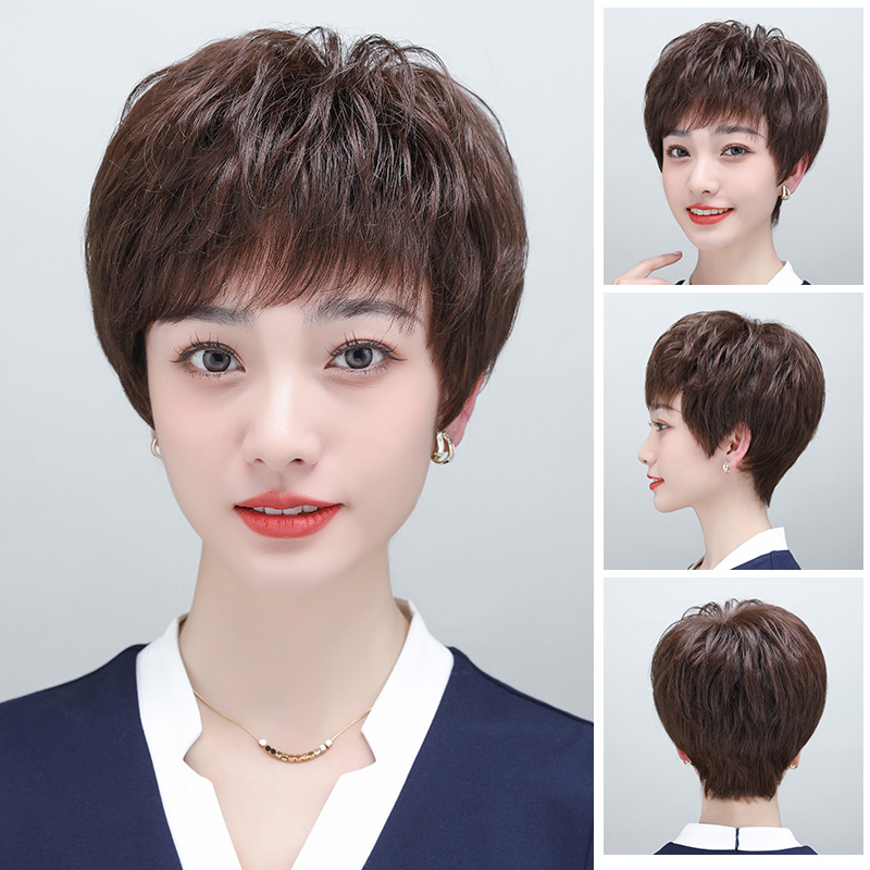 Wig real hair All true man short hair wig mother wig lady full headgear wig cover autumn winter natural short straight hair-Taobao