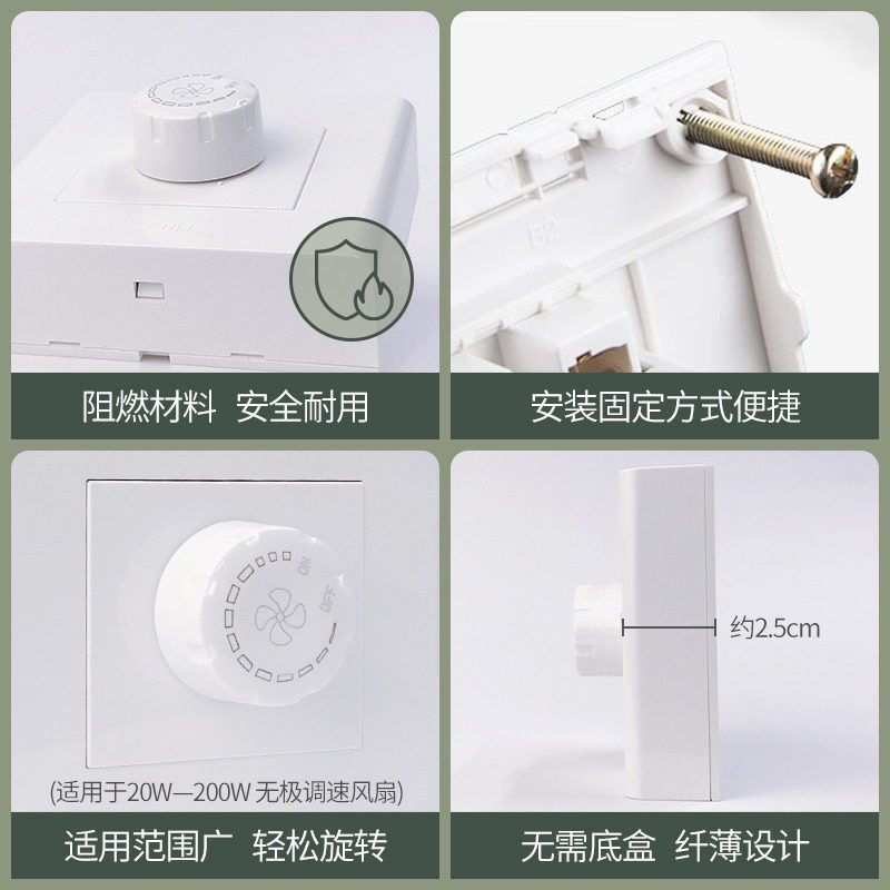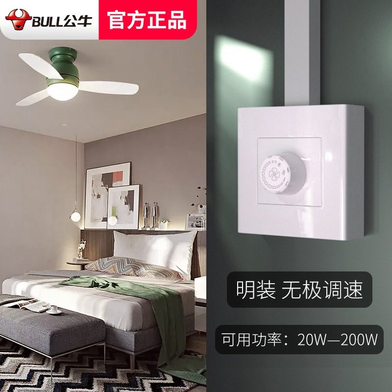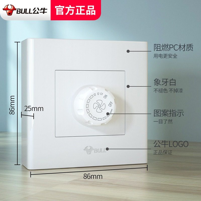 Bull Bright Dress Throttle Switch Electric Fan Ceiling Fan Electric Fan Electric Fan Speed Regulator Universal Infinitely Variable Speed Concealed Socket Pushbuttons-Taobao