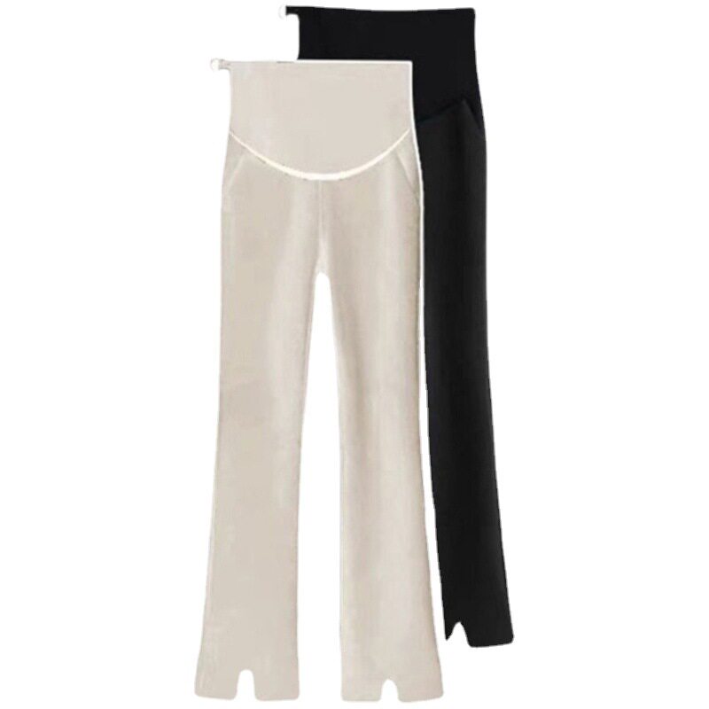 Pregnant women's trousers summer loose thin section outer wear slit micro flared suit pants small ice silk straight leggings