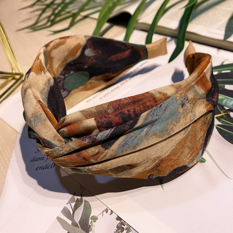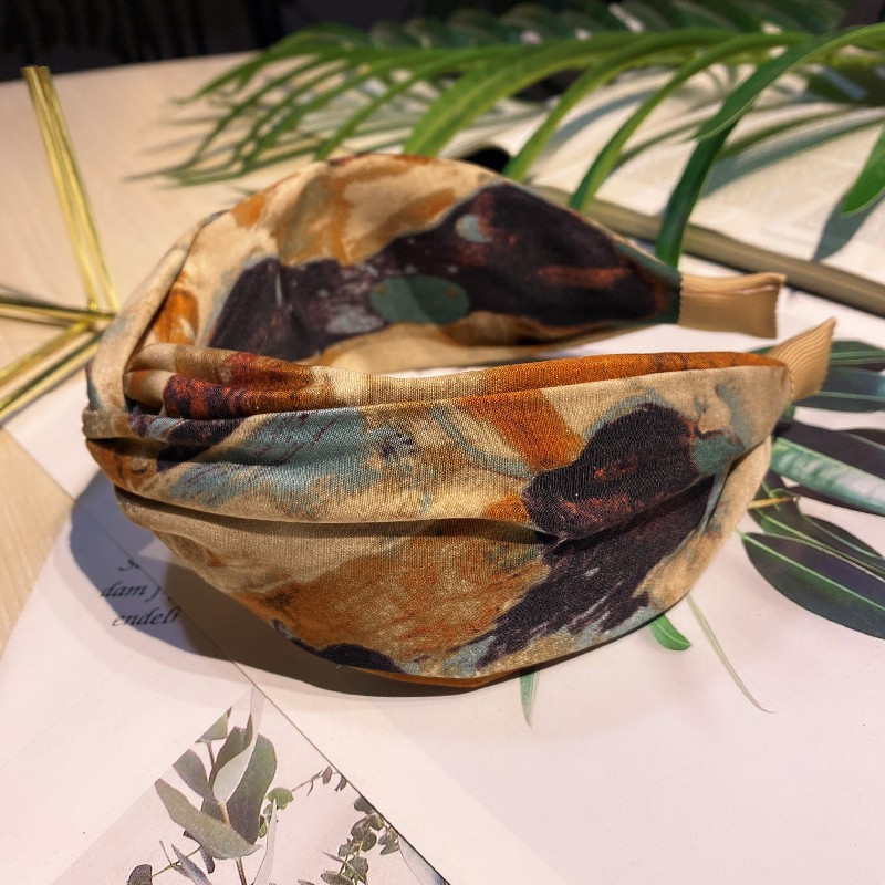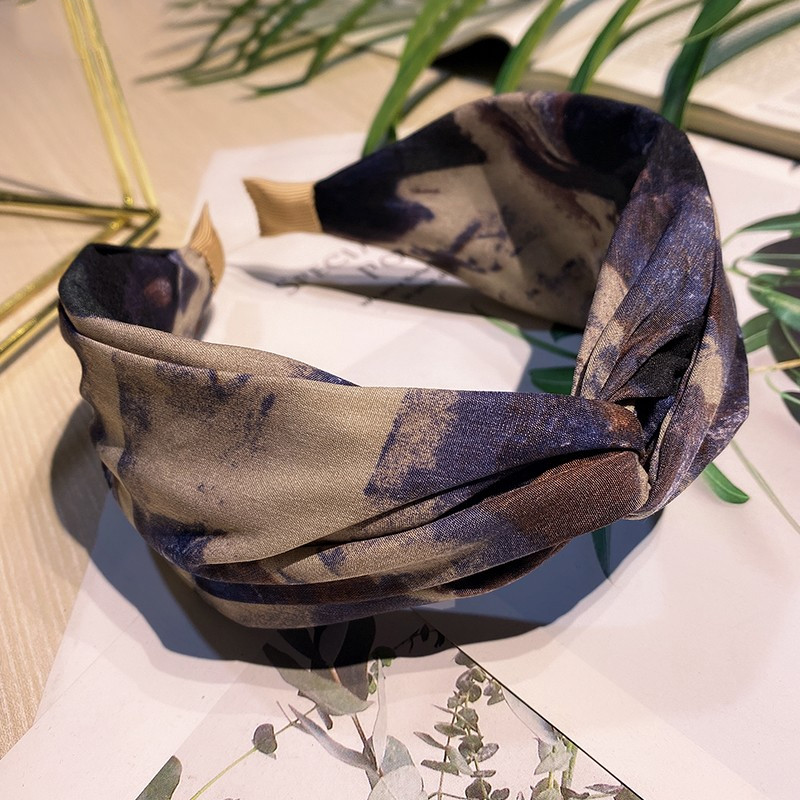 Korean retro tie-dye fabric headband wide-brimmed hairpin temperament simple ladies wear headband female all-match hair accessories