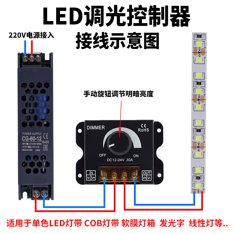 LED light with dimmer brightness adjustment switch 12V 24V luminous character light box control knob switch DIMMER-Taobao