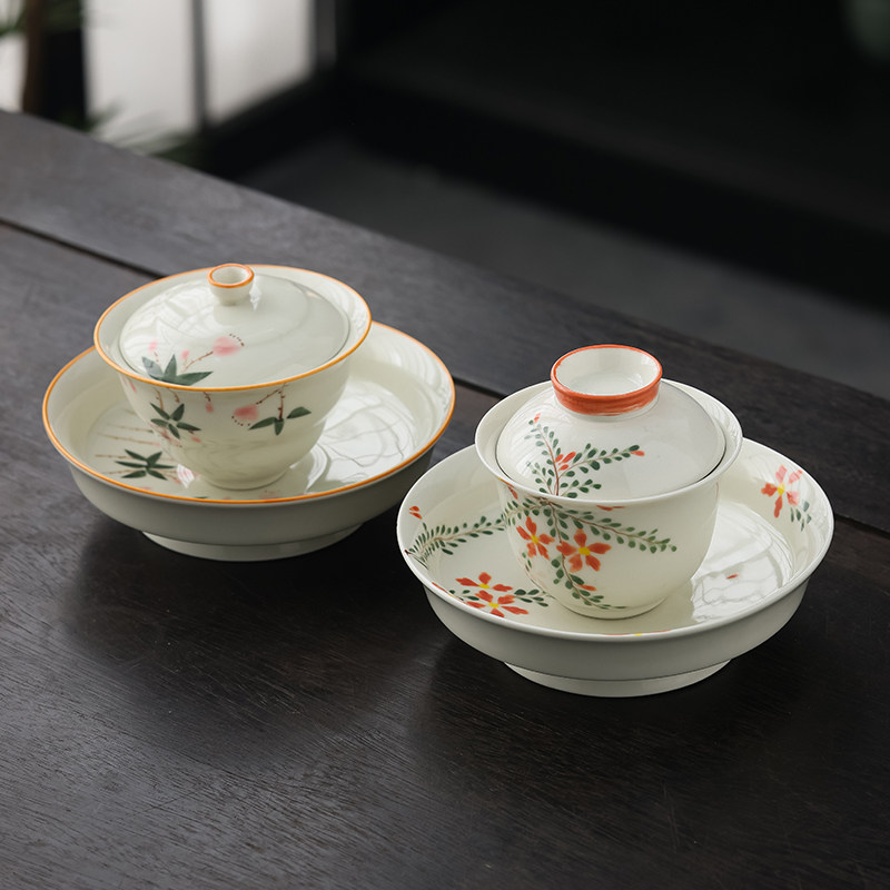 Ling Siao Flower Lid Bowl bearing (imitation ancient glaze) gourd flower cover bowl Bowl Bearing (Imitation Ancient Glaze) Flower Mouth Wood Cotton Cover Bowl (imitation ancient glaze) Pink color flower mouth plum flower lid bowl Lingxiao Three only cover Purple Vine Flowers Three-only Lid Bowl