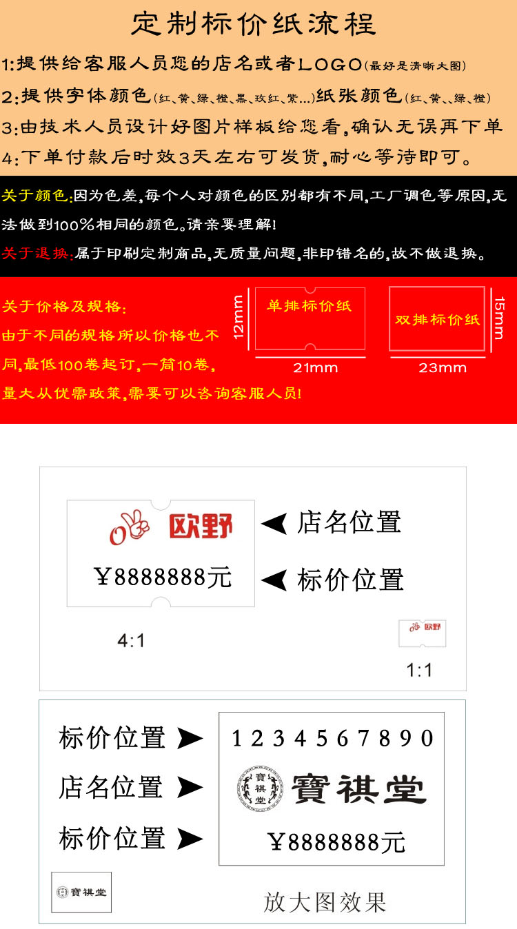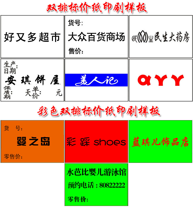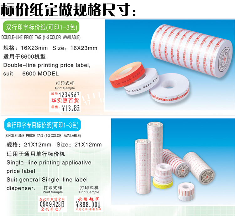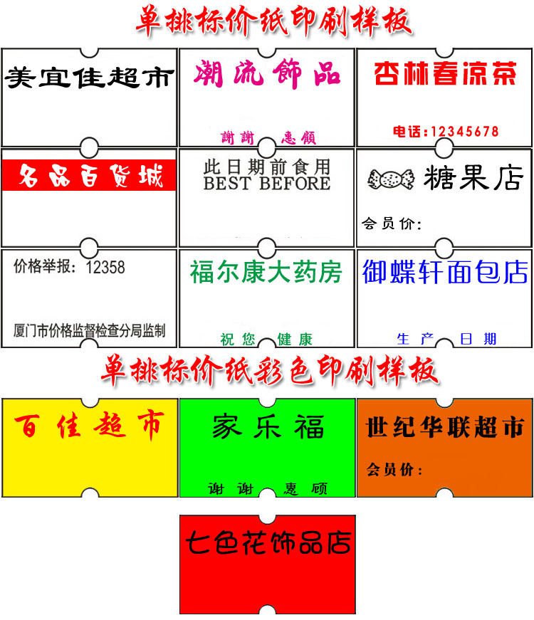 Price marking paper printing Shop name logo printing price paper printing single and double row code paper customization