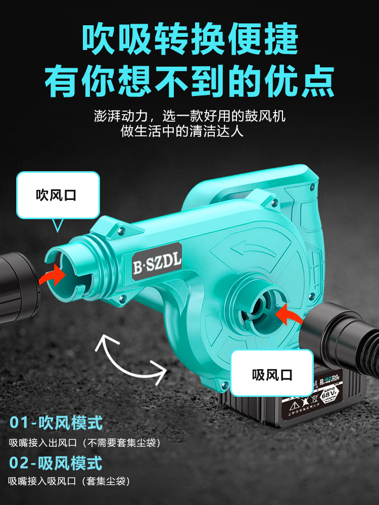 High-power lithium battery blower rechargeable hair dryer industrial small vehicle vacuum cleaner dust collector soot blower snow blower