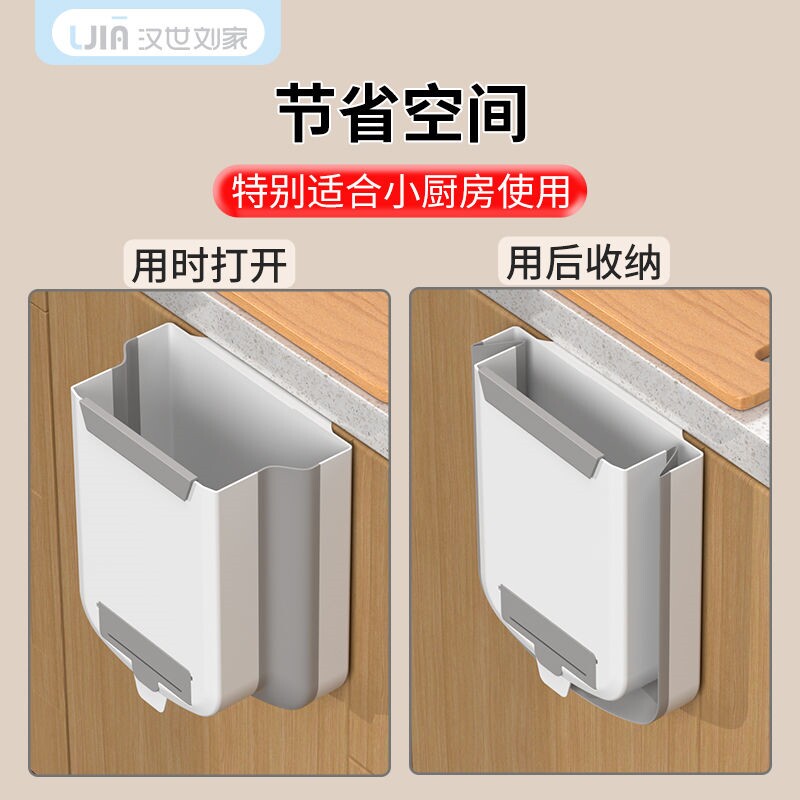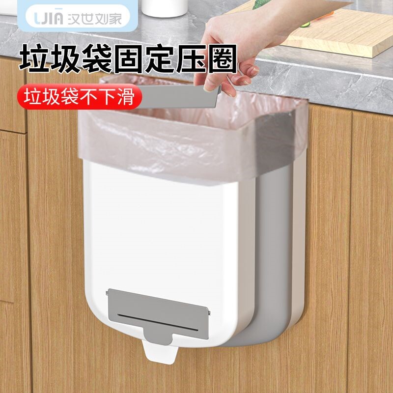 Kitchen trash can household large-capacity new wall-mounted cabinet door foldable multi-functional pull trash can