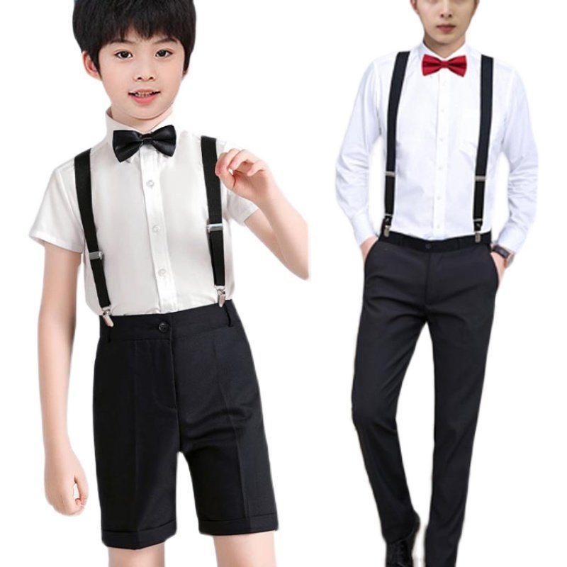 Children's suspenders white shirt show adjustable elastic suspenders black red bow tie trousers suspenders uniform