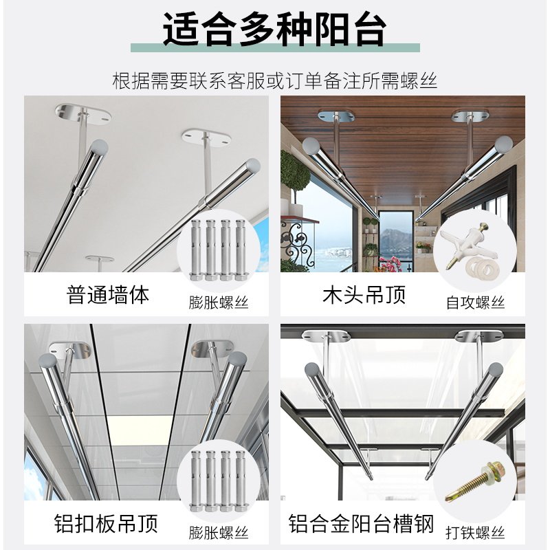 Solid stainless steel stationary clotheshorse Balcony Top Mount Fixed Clothes Hanger Single Rod Cool Hanger Rod Style Sunning Rod-Taobao