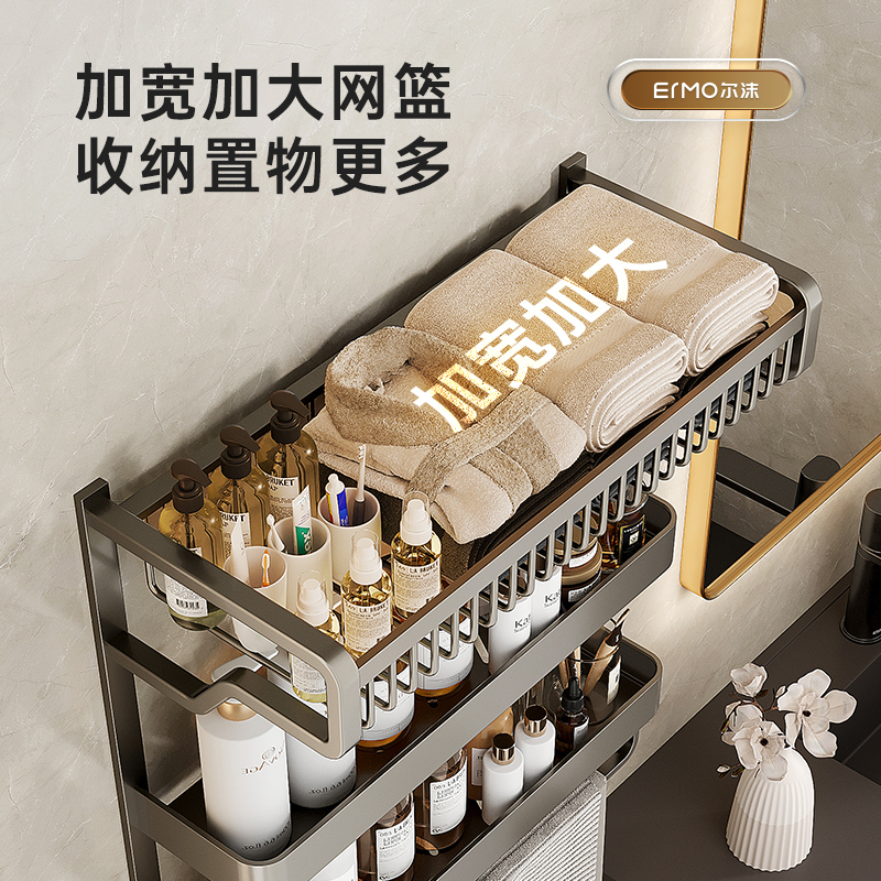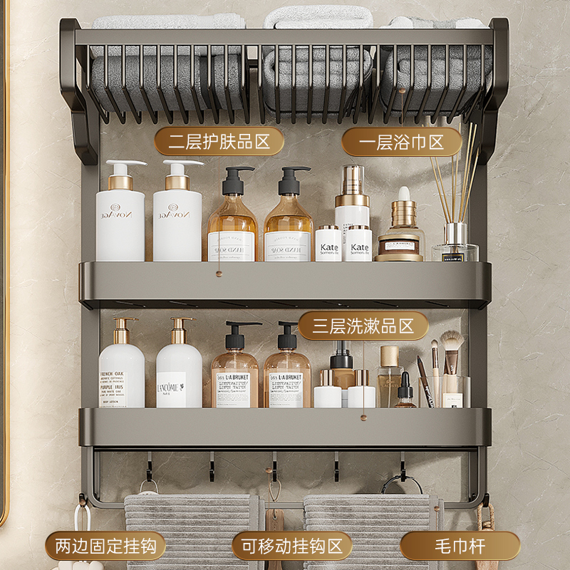 Bathroom towel rack toilet shelving with punch-free hanging bar one-piece bathroom toilet bath towel rack 1434-Taobao