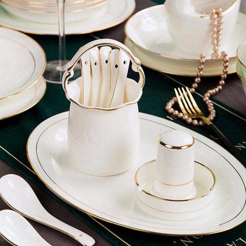 Jingdezhen Ceramic Tableware Bowl Set Household Chinese Style Light Luxury Simple Bone China Housewarming Tableware Bowl Chopsticks Combination