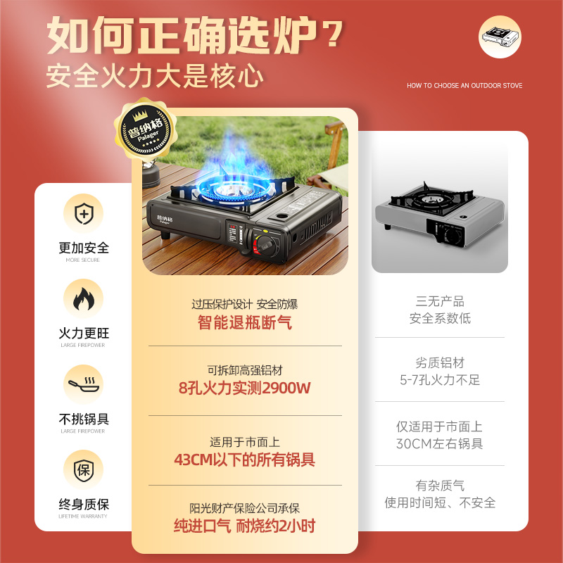 (Collection plus purchase with 1 bottle of high pure gas) One bottle of high pure gas Sustainable combustion 2 hours Double safety device 4 bottle gas (70% of customer choice) Double safety device 8 bottle gas