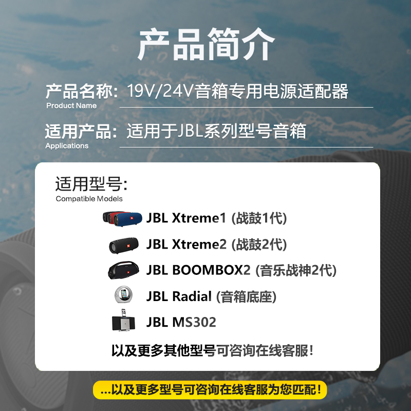 (19V Power supply) Applicable JBL Xtreme1 Wardrum 1 generation (19V power supply) Applicable JBL Xtreme2 Wardrum 2 generation (24V power supply) Applicable B