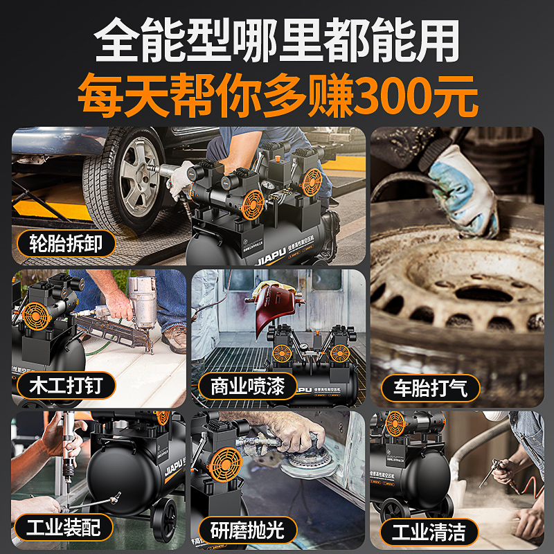 Tire removal, tire inflating, car cleaning, carpentry nailing, decoration painting, cleaning and dust removal, pneumatic pick demolition, etc.