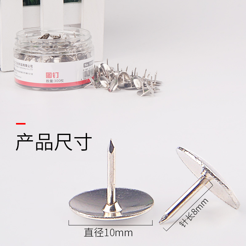 Metal drawing nail by nail nickel-plated hand in small round head nail large head needle office supplies fixing pin soft wooden board photo wall decoration flat head fixing wall pinkling diner by Ting-Taobao