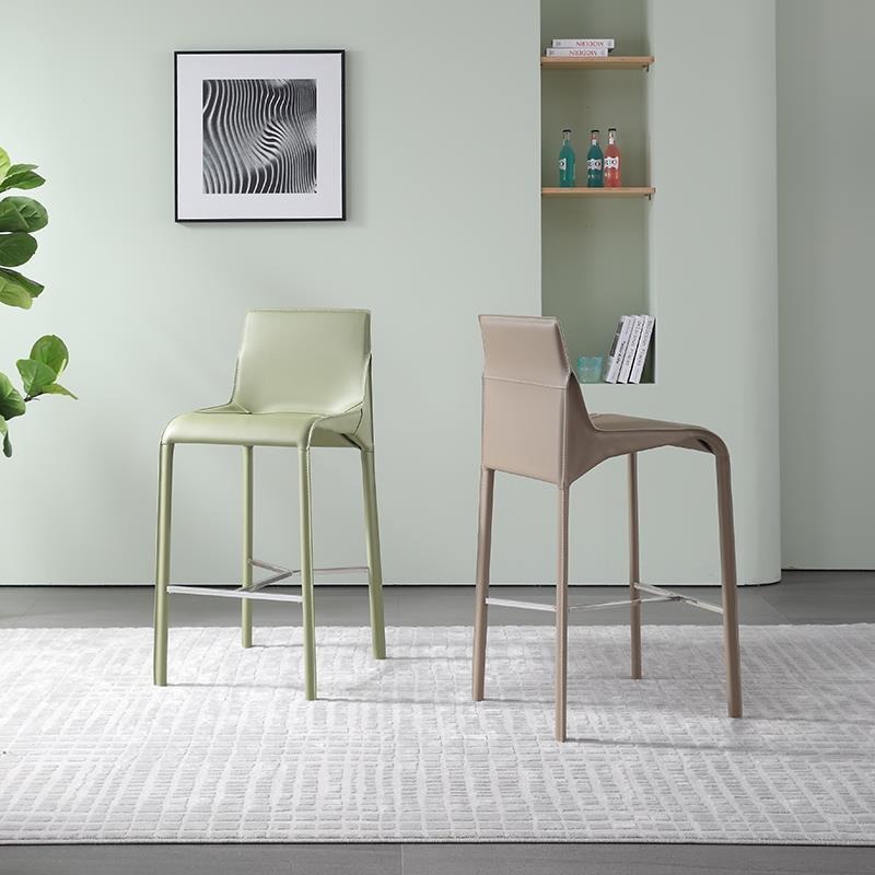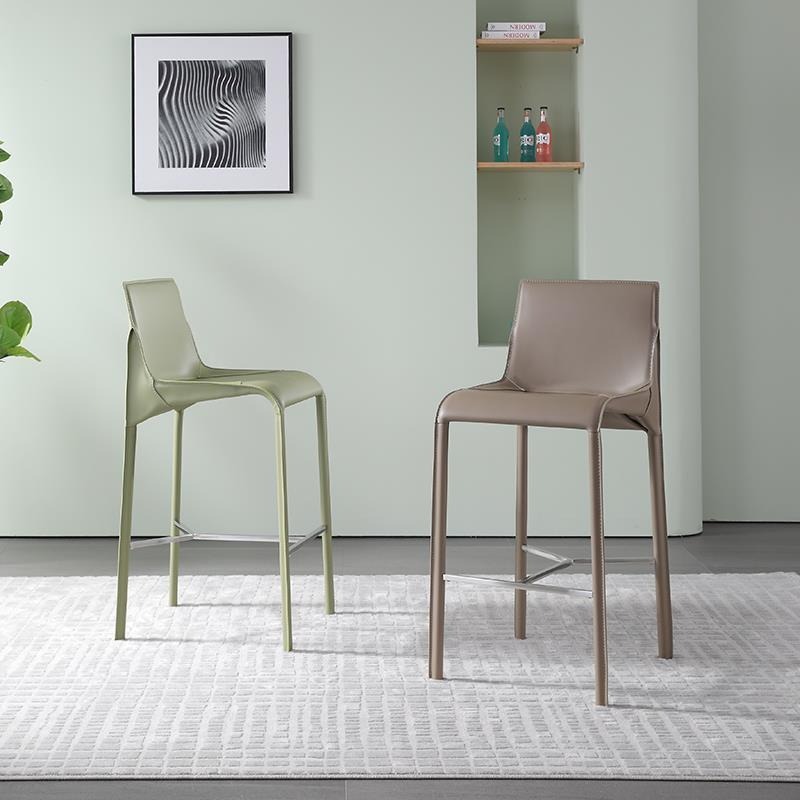 Willy-style minimalist saddle leather bar bench designer Style Home High Footrest Bar Superior Sense Light Luxury Bar Stool-Taobao