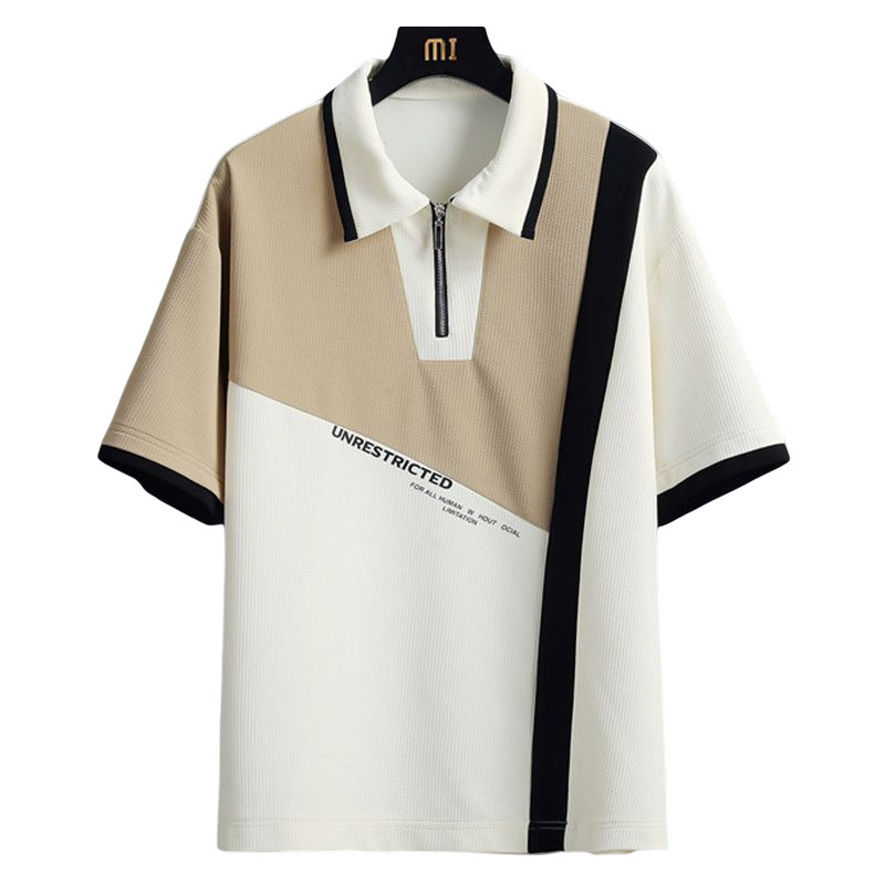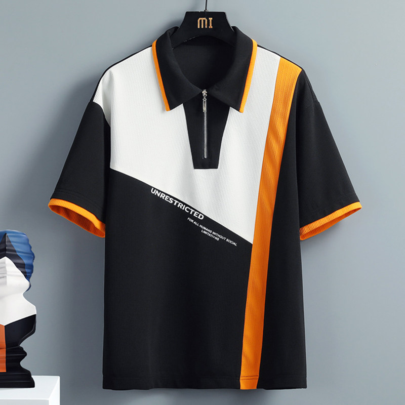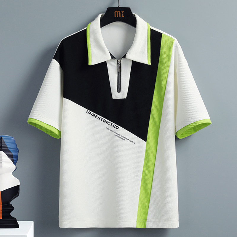 Semi-zipped polo shirt man short sleeve Summer ice silk speed dry turtlenecks T-shirt male tide Hit Color Teen Body Shirt-Taobao