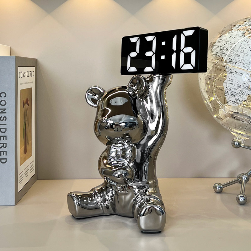 Living Room Creative Violent Bear Watch Clock Intelligence Small Alarm Clock Desktop Electronic Digital Clock Pendulum Table Swing Table Watch-Taobao
