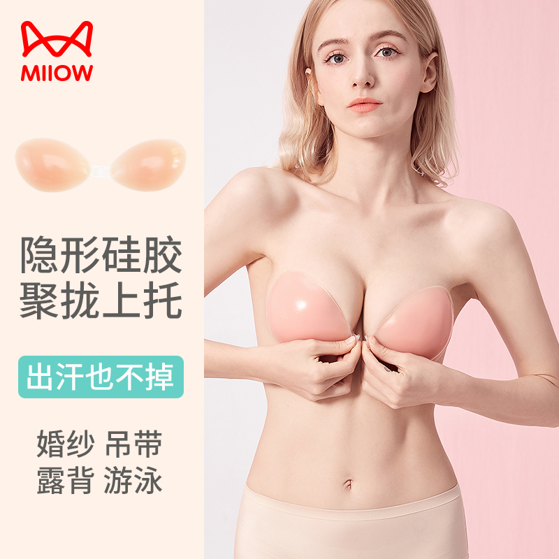 Chest patch female wedding dress with winter harness with no shoulder strap underwear small breasted with up to silicon latex sticker invisible bra-Taobao