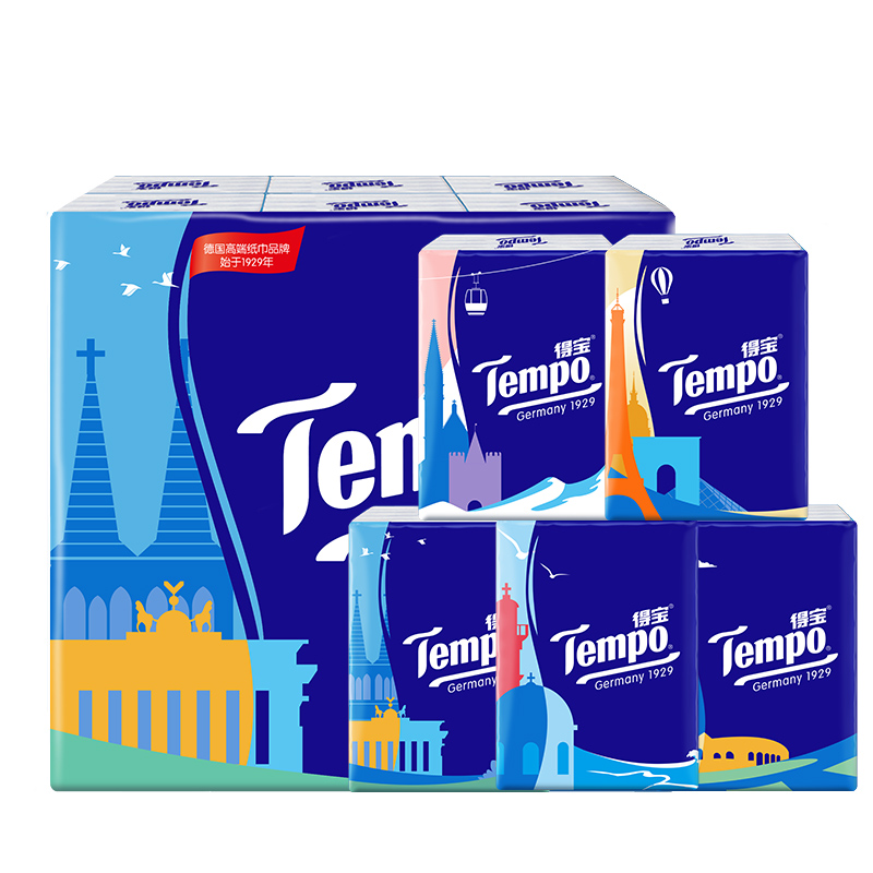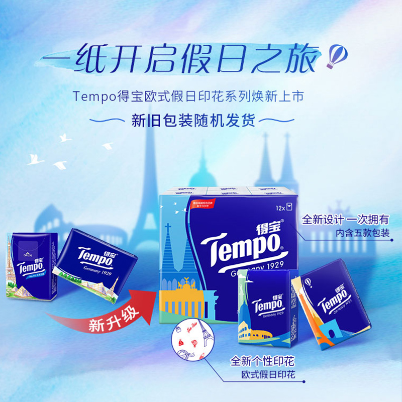 Tempo Gain Paper Towel Printed Hand Parchment Paper 4 Layers Thickened Face Towels Paper 12 Packs No Fragrant Mini Face Towel Paper Carry-on-Taobao