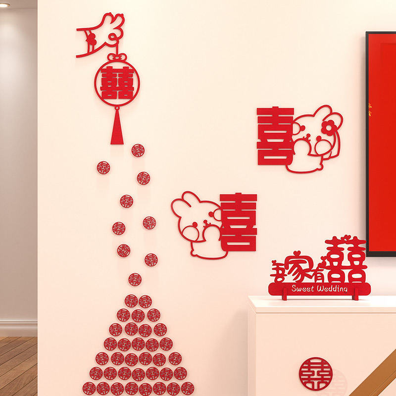 Happy words Wedding Exclusive Bedroom Wedding house Placement suit Wedding decoration Calligraphy Door Wedding door sticker Supplies Grand-Taobao