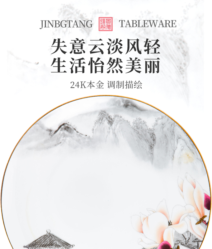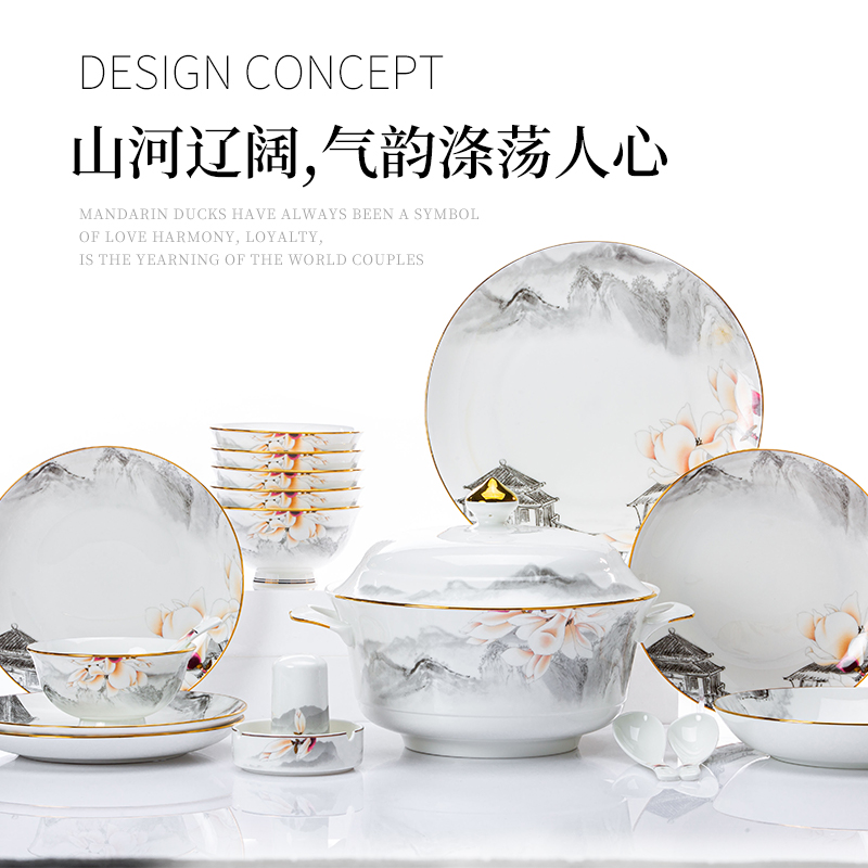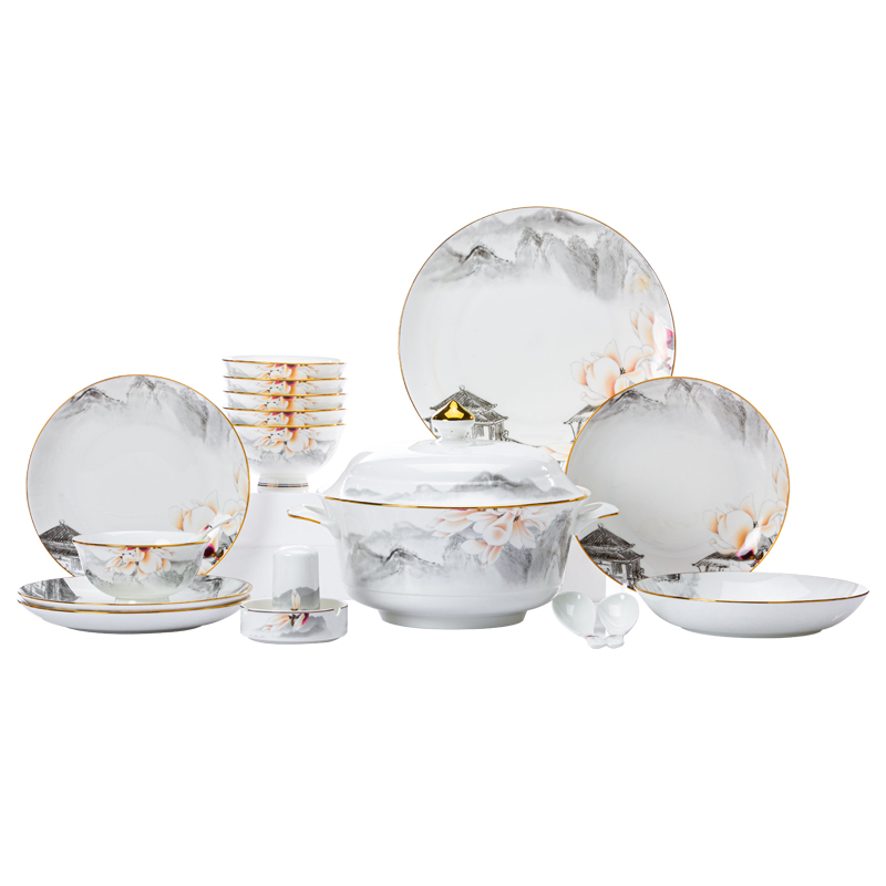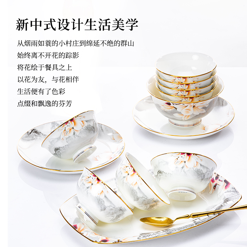 Bowl Suit Home Chinese Style Light Lavish Scenery Dezhen High-end Bone China Porcelain Cutlery Cutlery Bowl tray Chopsticks Joe Accommodate 1020-Taobao